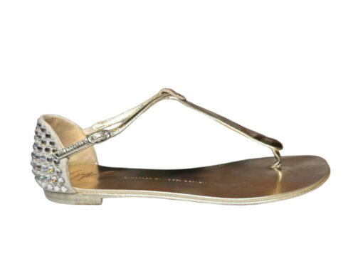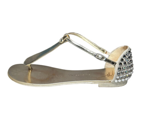 - Style: Crystal Embellished T-Strap Flat Sandals