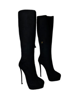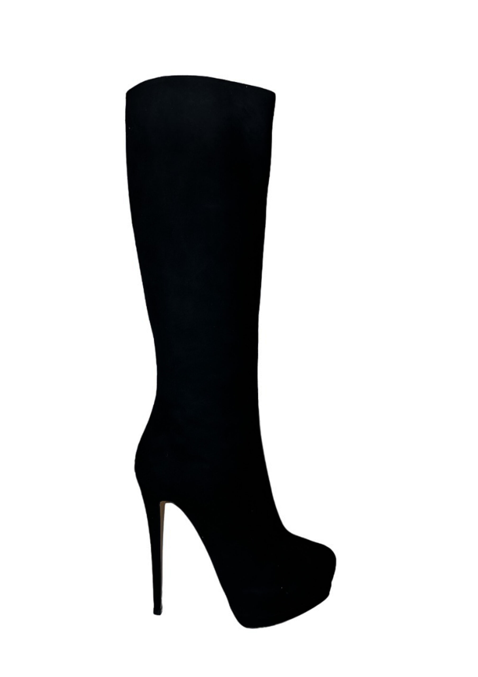 - Style: Eva Skyhigh Suede Platform Black Knee High Stiletto Boots