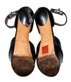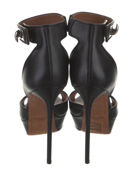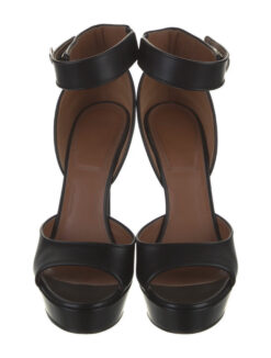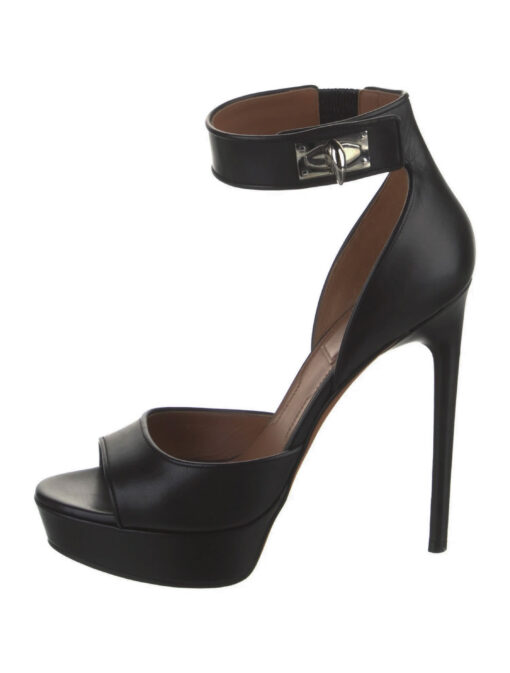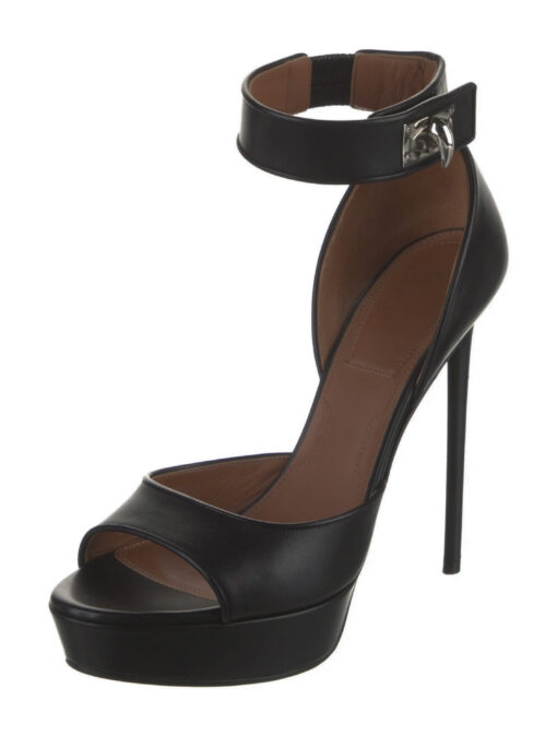 - Style: Black Leather Ankle Strap Shark Lock Platform Heels Sandals
