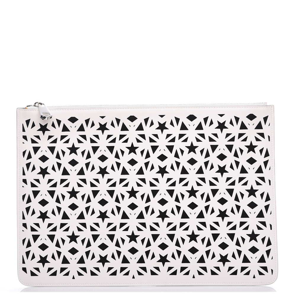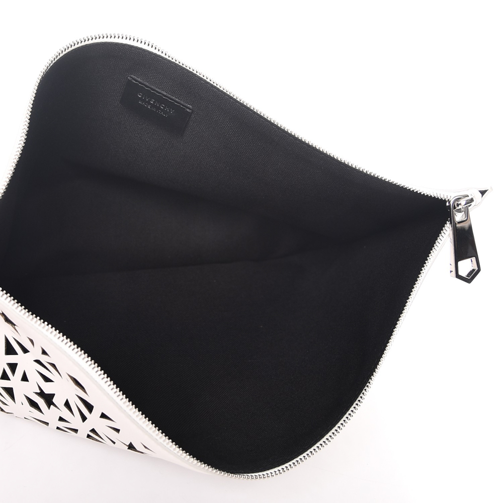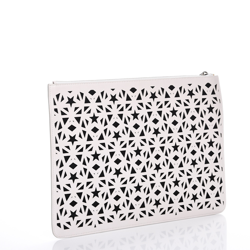 - Style: Lambskin Laser Cut Star Print Large Pandora Pouch Clutch White Black