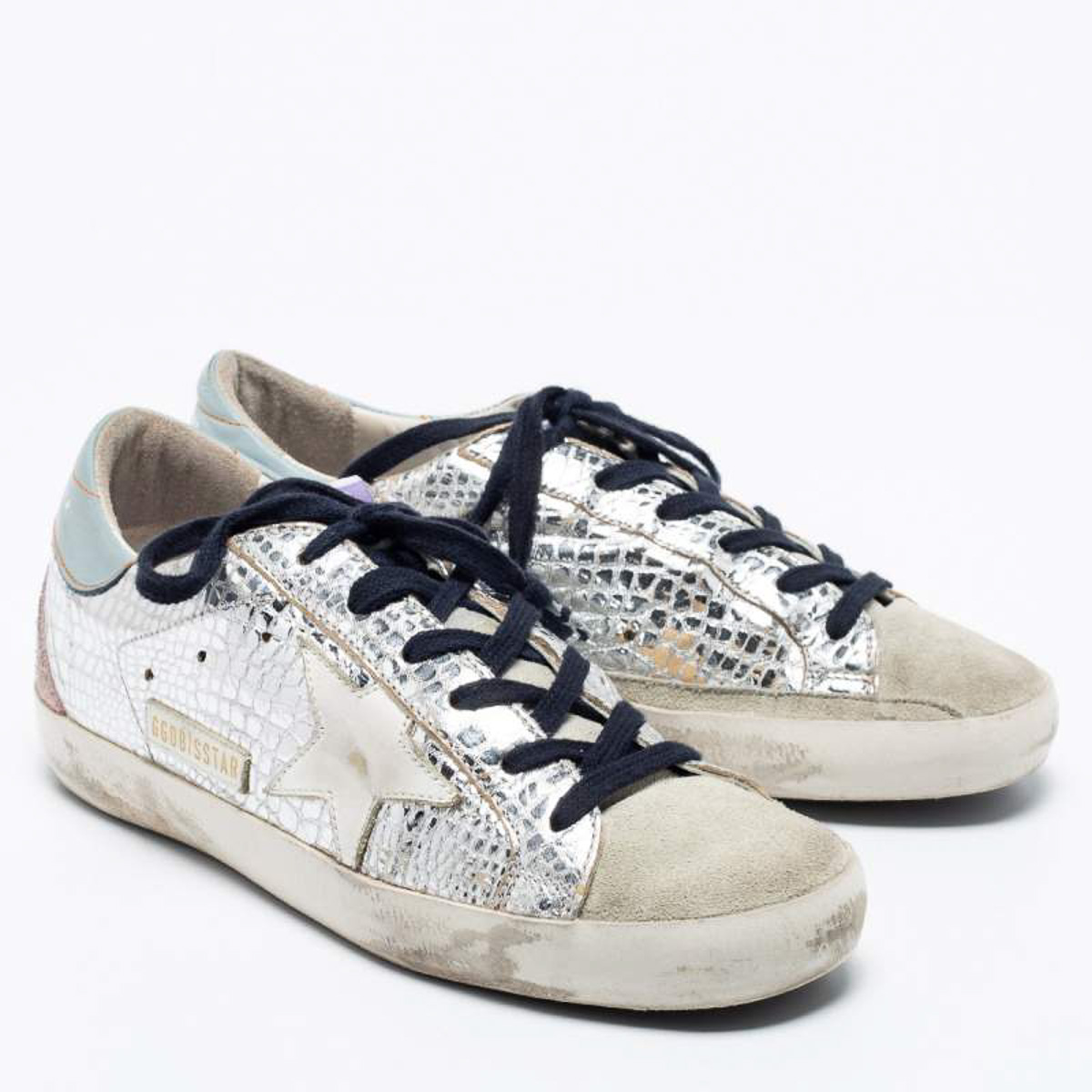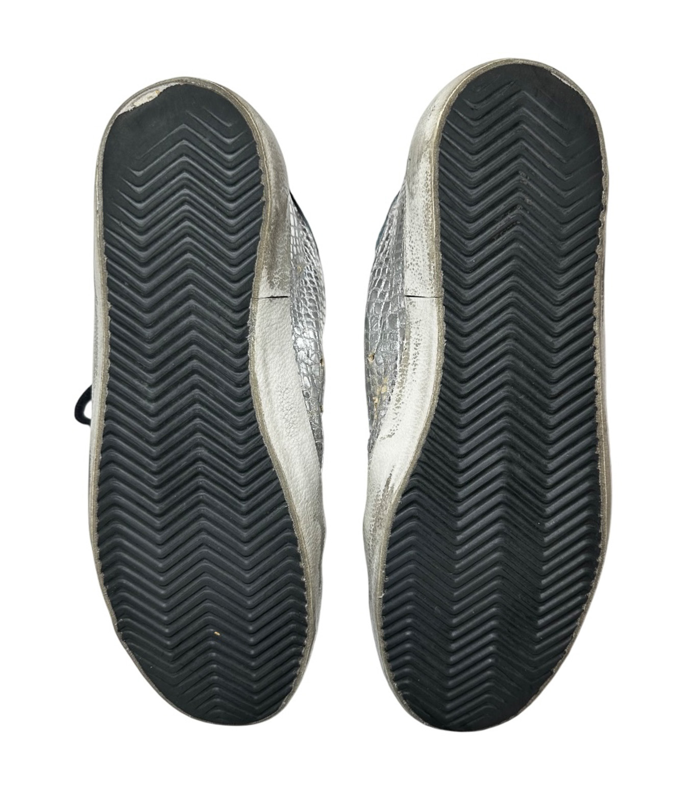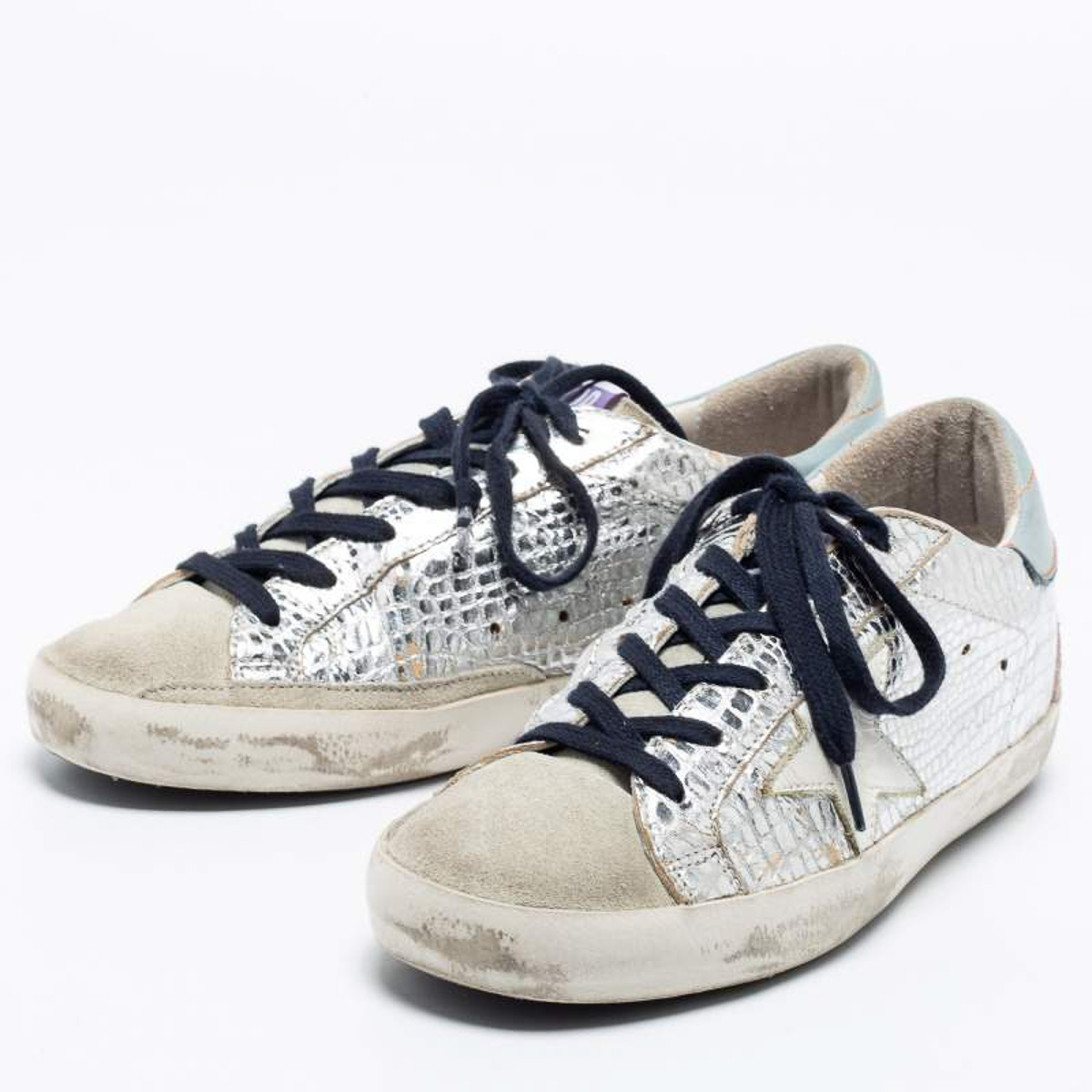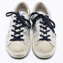 - Style: Superstar Silver Metallic Leather Low Top Sneakers