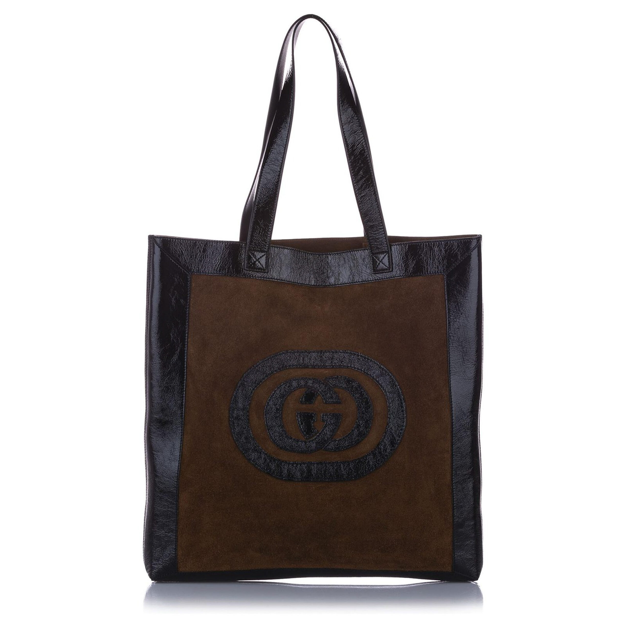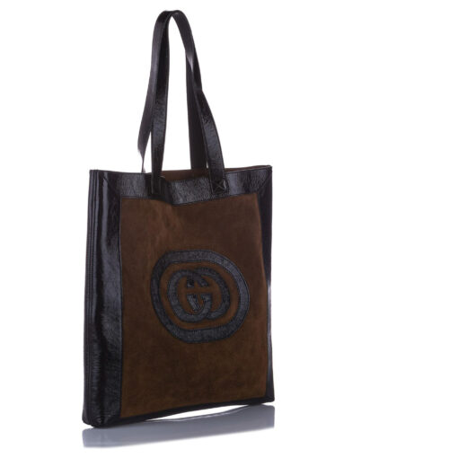 • Style: OPHIDIA BROWN SUEDE PATENT SHOPPING TOTE BAG & POUCH