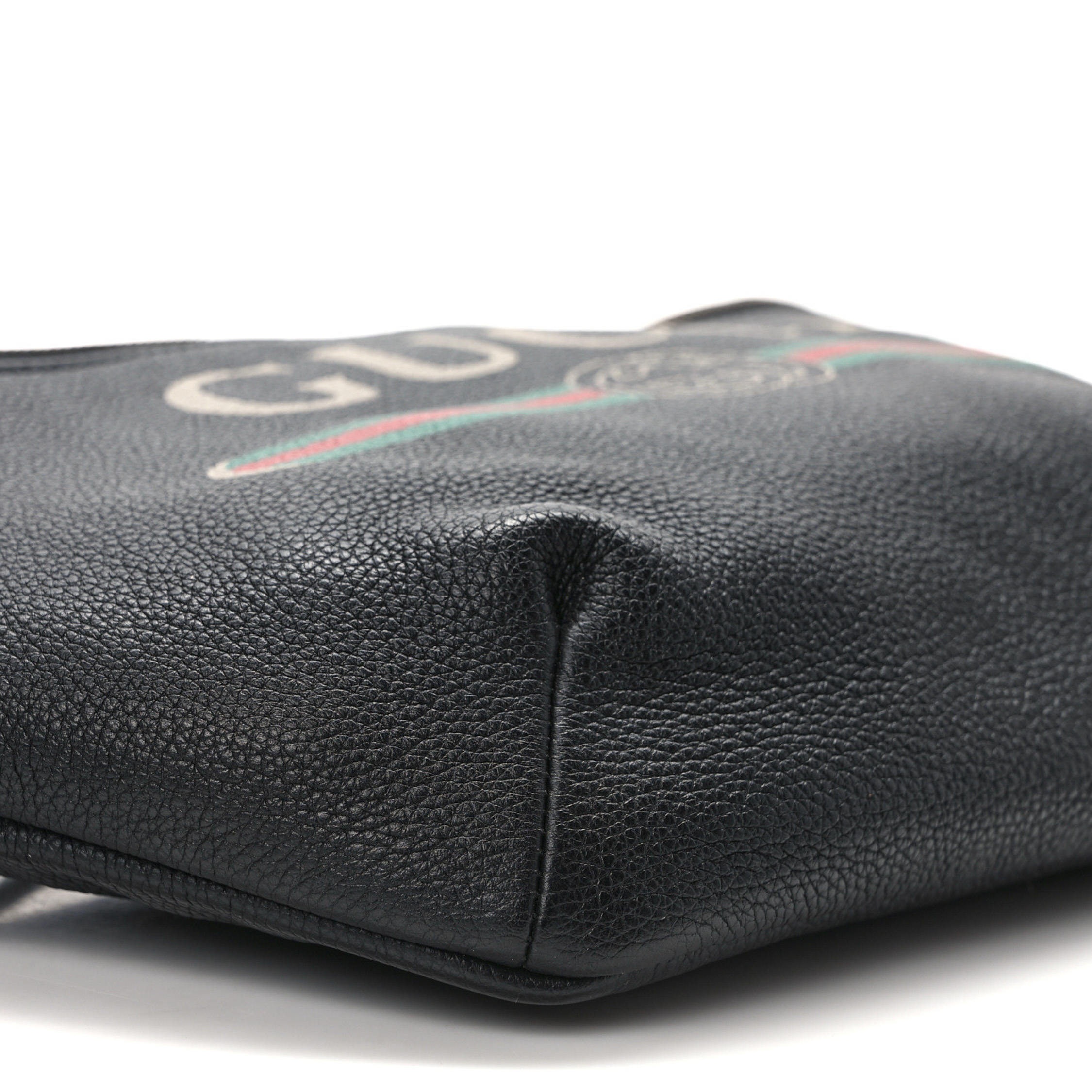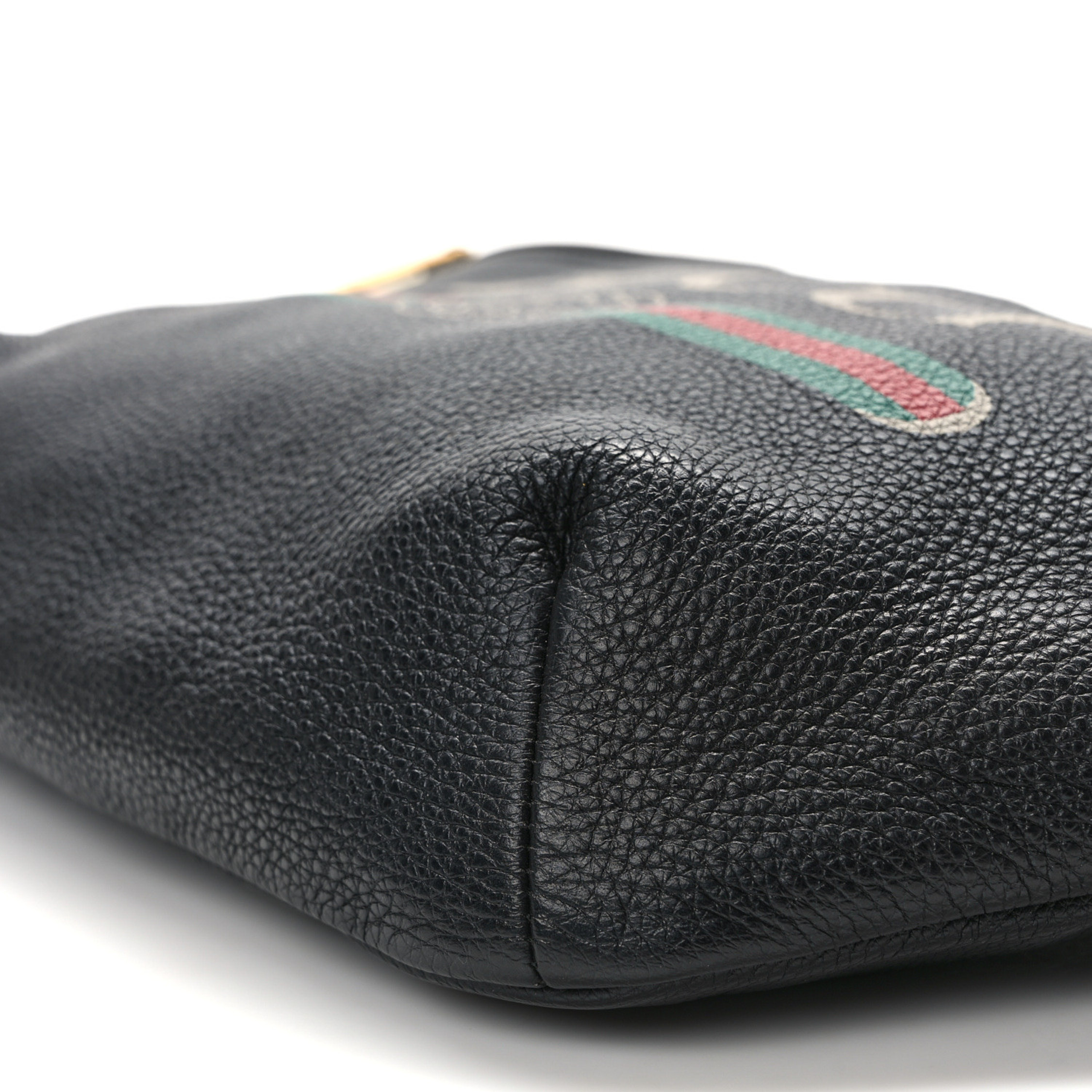 GUCCI Black Grained Calfskin GG Logo Web Stripe Medium Bum Belt Bag