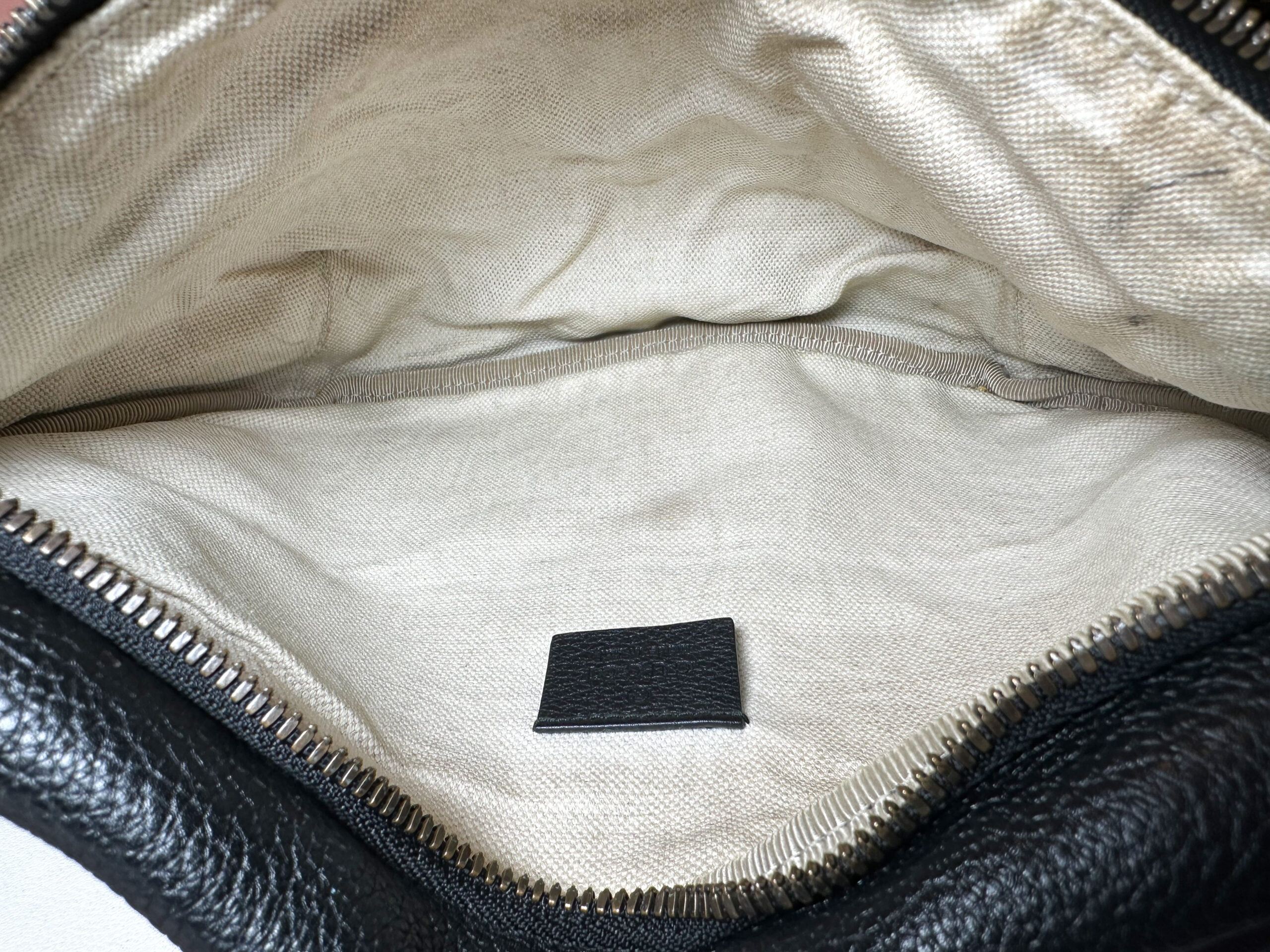• Style: Black Grained Calfskin GG Logo Web Stripe Medium Belt Bag
