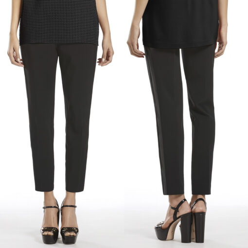 - Style: BLACK LEATHER SIDE STRIPE MID RISE SKINNY DRESS PANTS