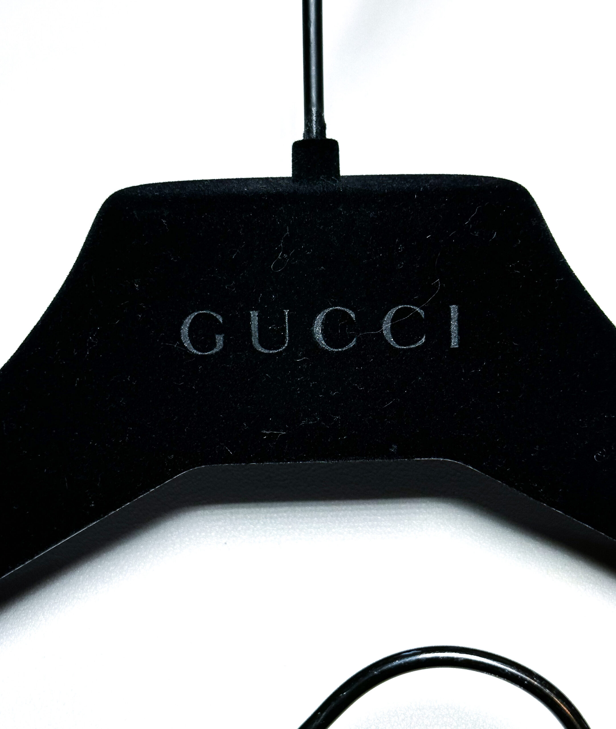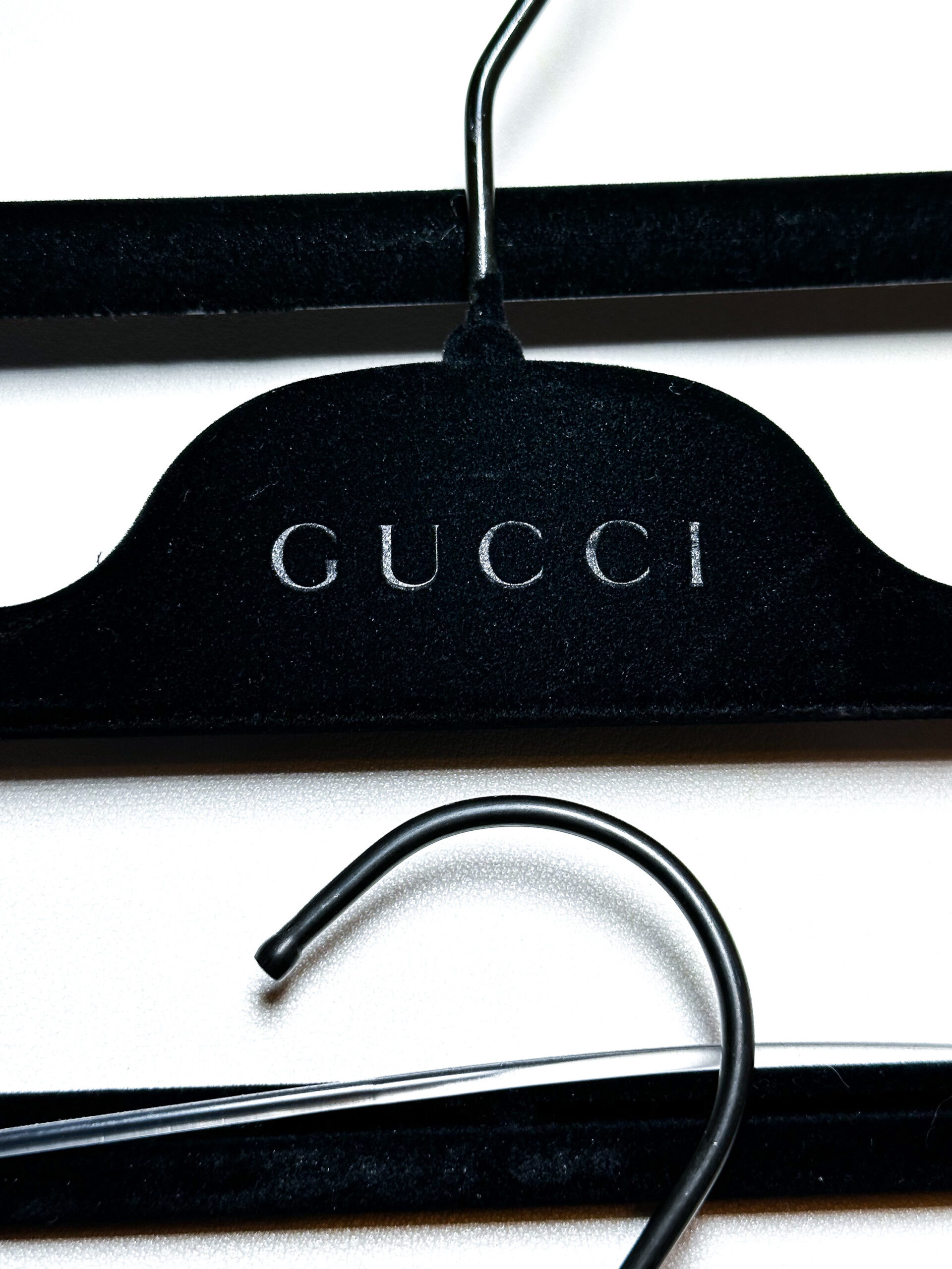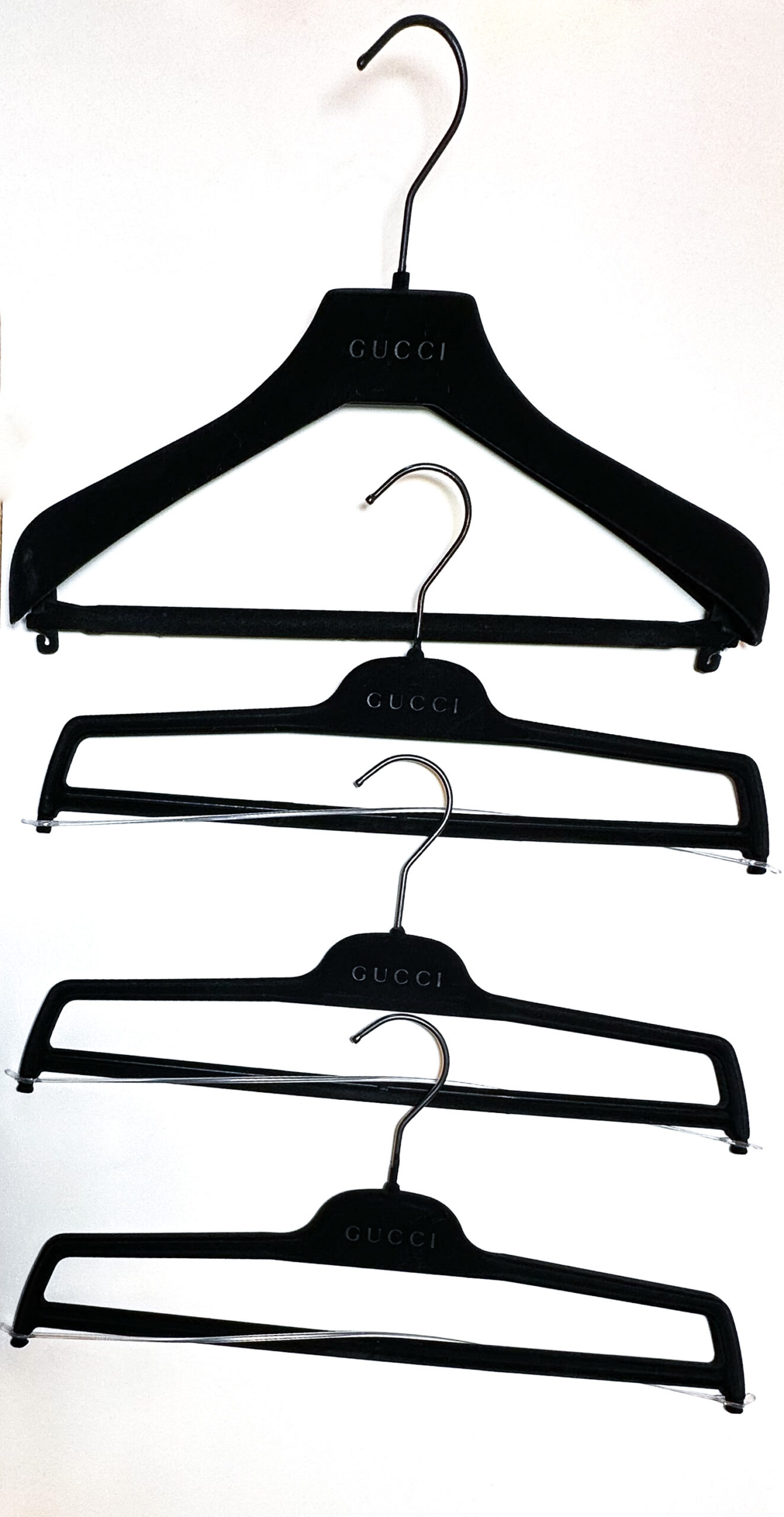 GUCCI BLACK VELVET SET OF 4 NON SLIP CLOTHES HANGERS 14.5″