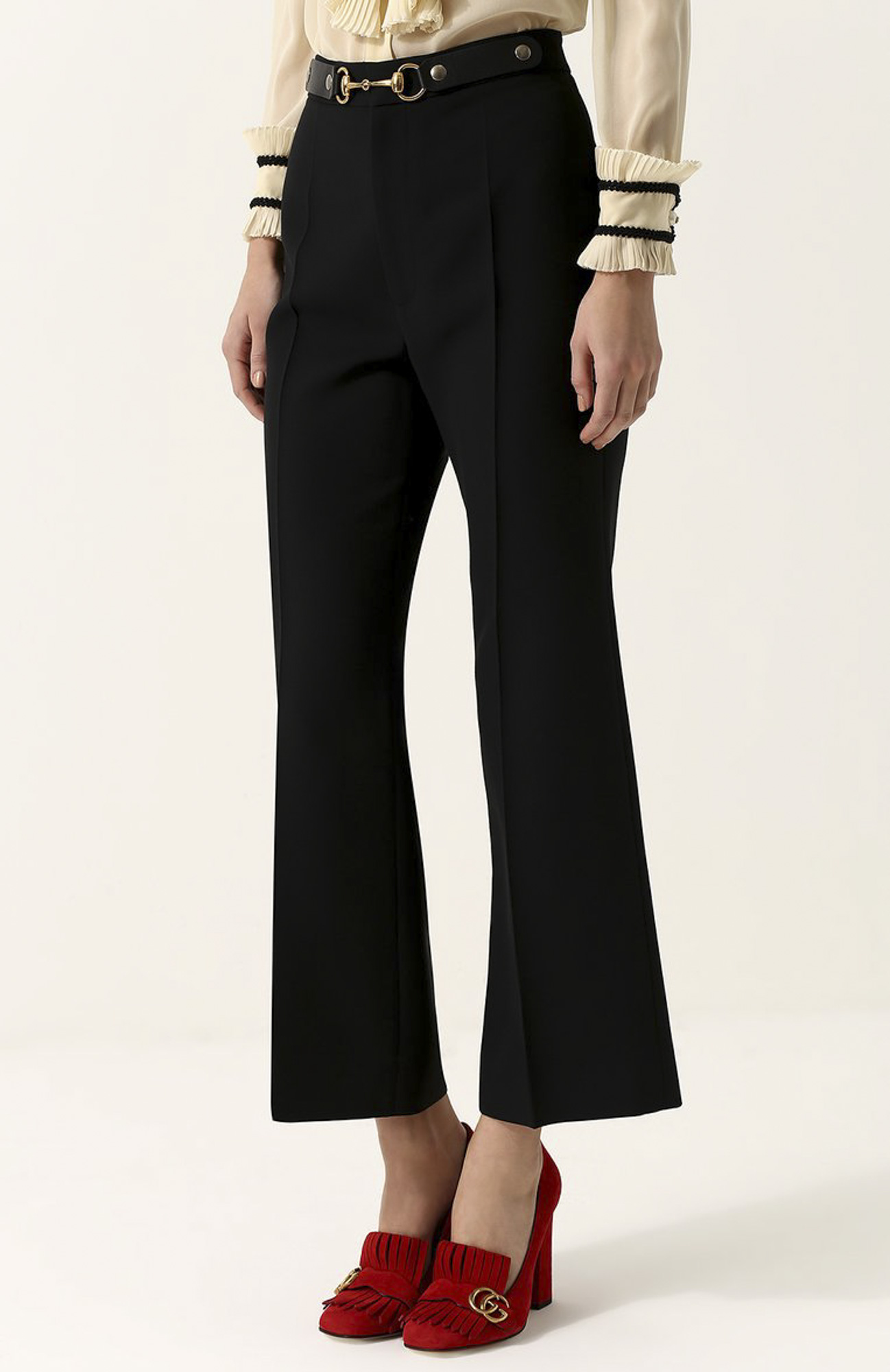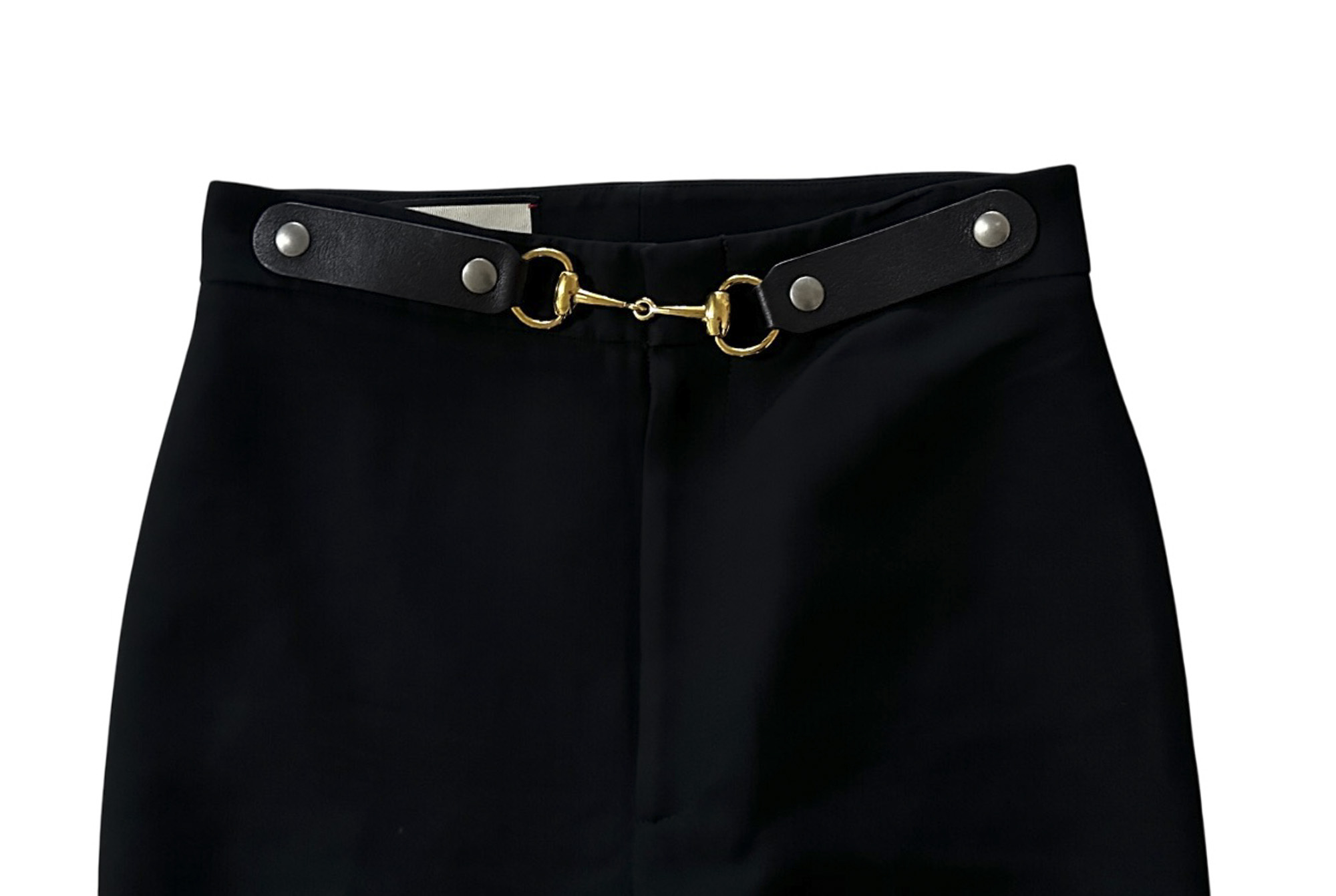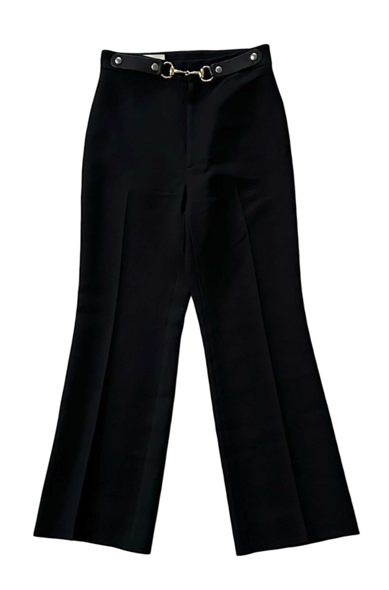 Gucci Black Wool Silk High Rise Horsebit Belt Flare Dress Pants Size 40
