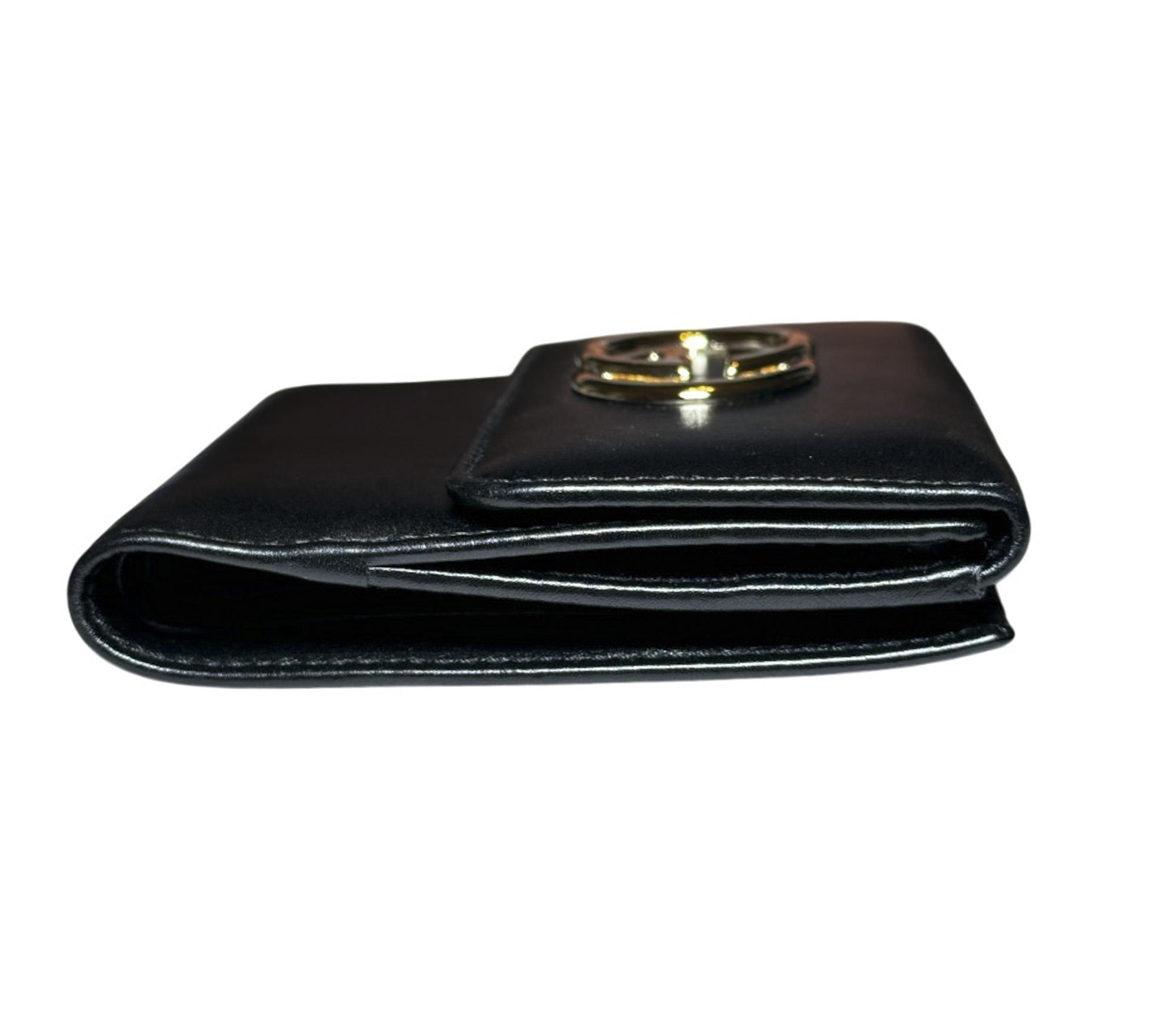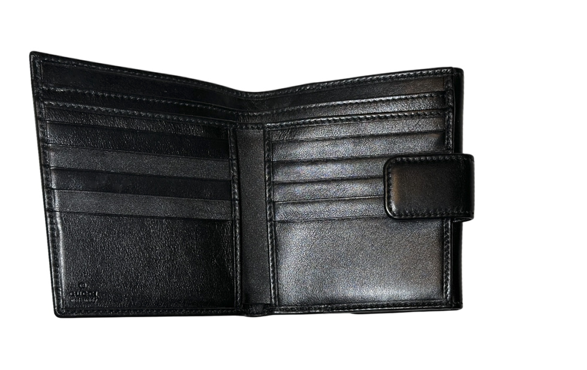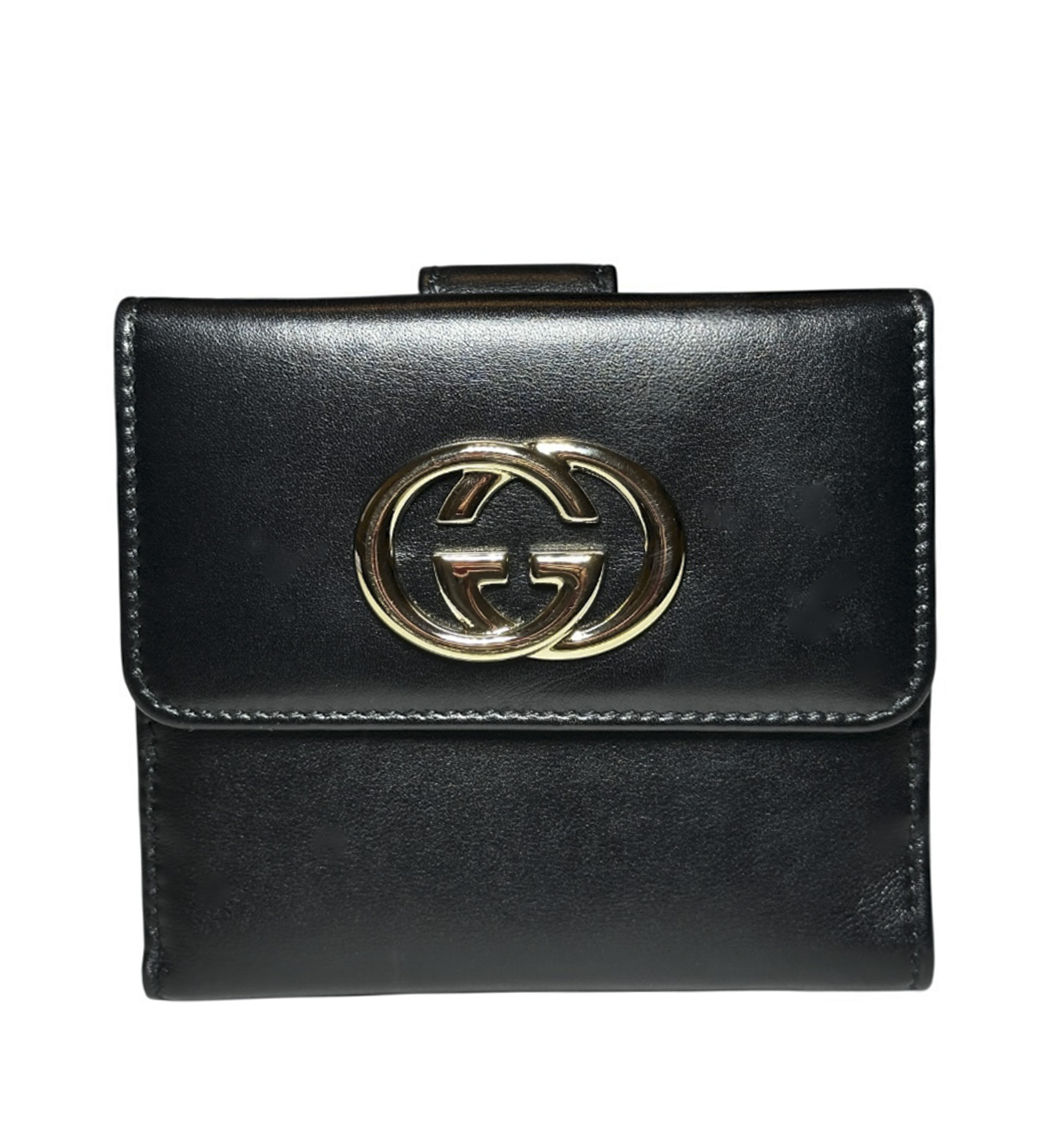 • Style: Britt Interlocking GG Black Calfskin Leather Compact Bi-Fold Wallet