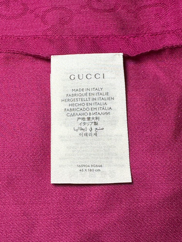 Gucci GG Wool Silk Jacquard 45x180 Scarf Wrap Shawl Pink