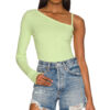 Tibi Ribbed T Racerback Square Neck Bodysuit Top Small White