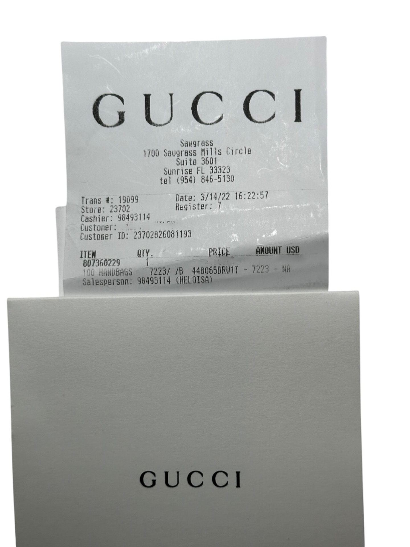 • INCLUDES GUCCI BOX, DUSTER, EXTRA LEATHER & ORIGINAL RECEPT (personal info blacked out)