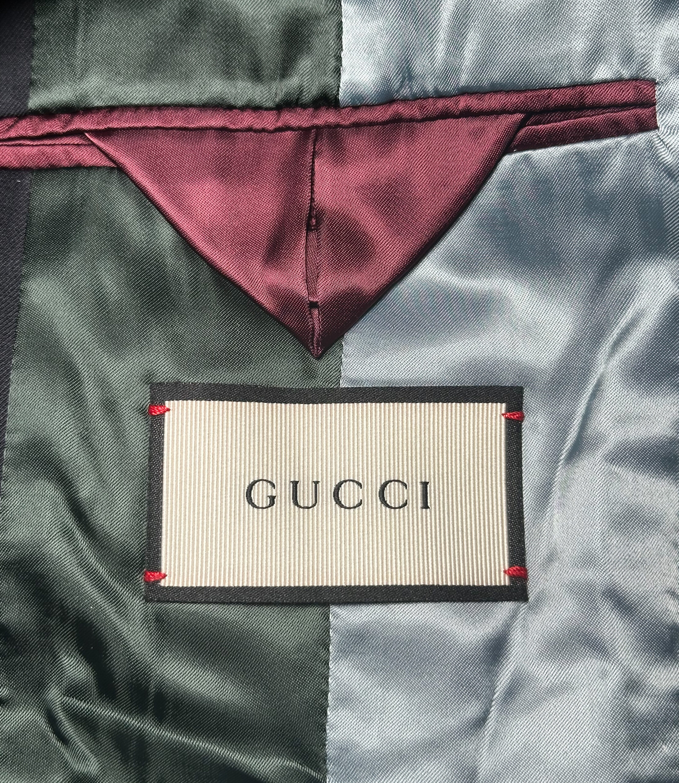 SKU: 4100 - 952331444587644-1-1-1-1-1-1 Categories: GUCCI, Men's Tags: BLUE, GG, GUCCI, HERITAGE, INTERLOCKING, JACKET, LOGO, NAVY, PANTS, RUNWAY, SLIM, STRIPE, SUIT, WOOL Brand: Gucci