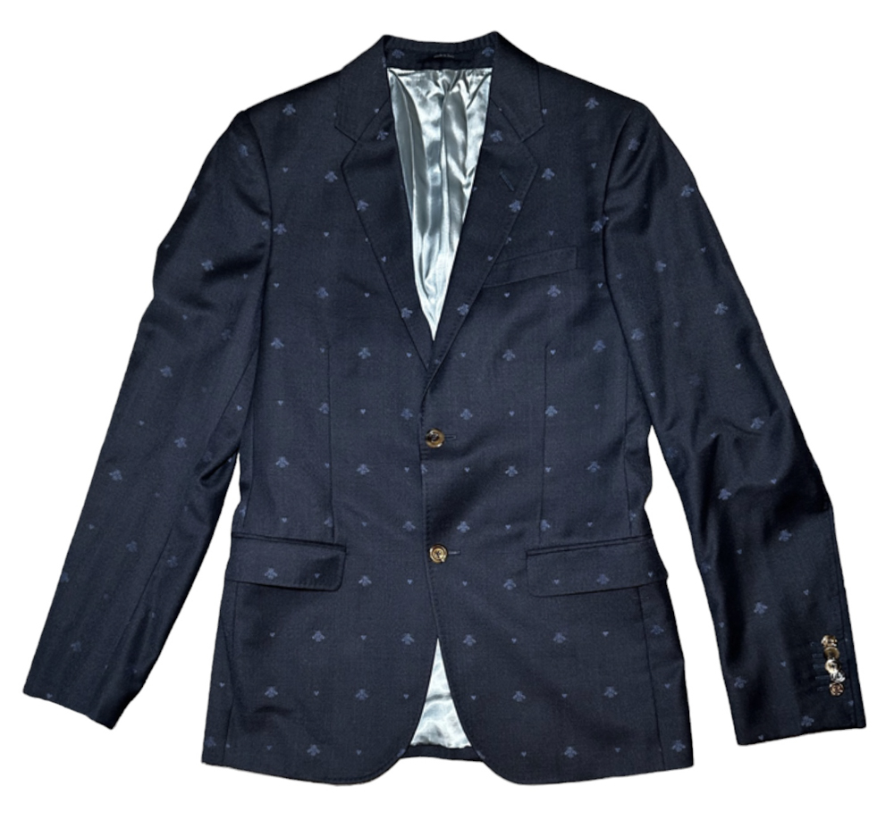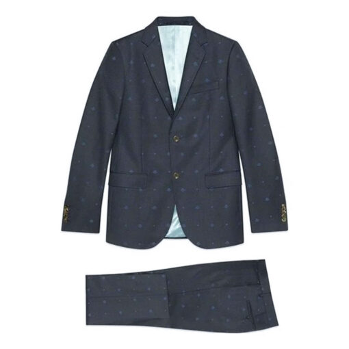 - Style: Monaco Bee Heart Logo Wool 2 Piece Slim Fit Suit Jacket Pants