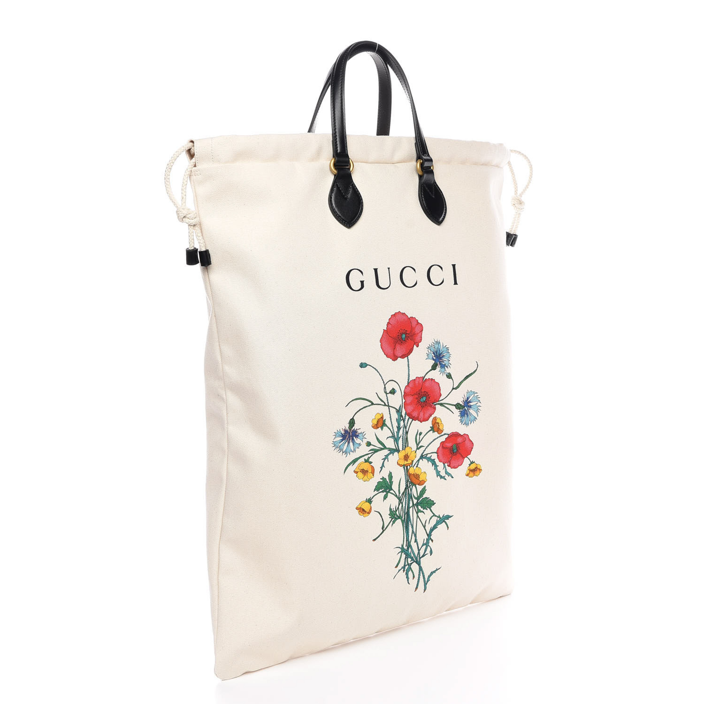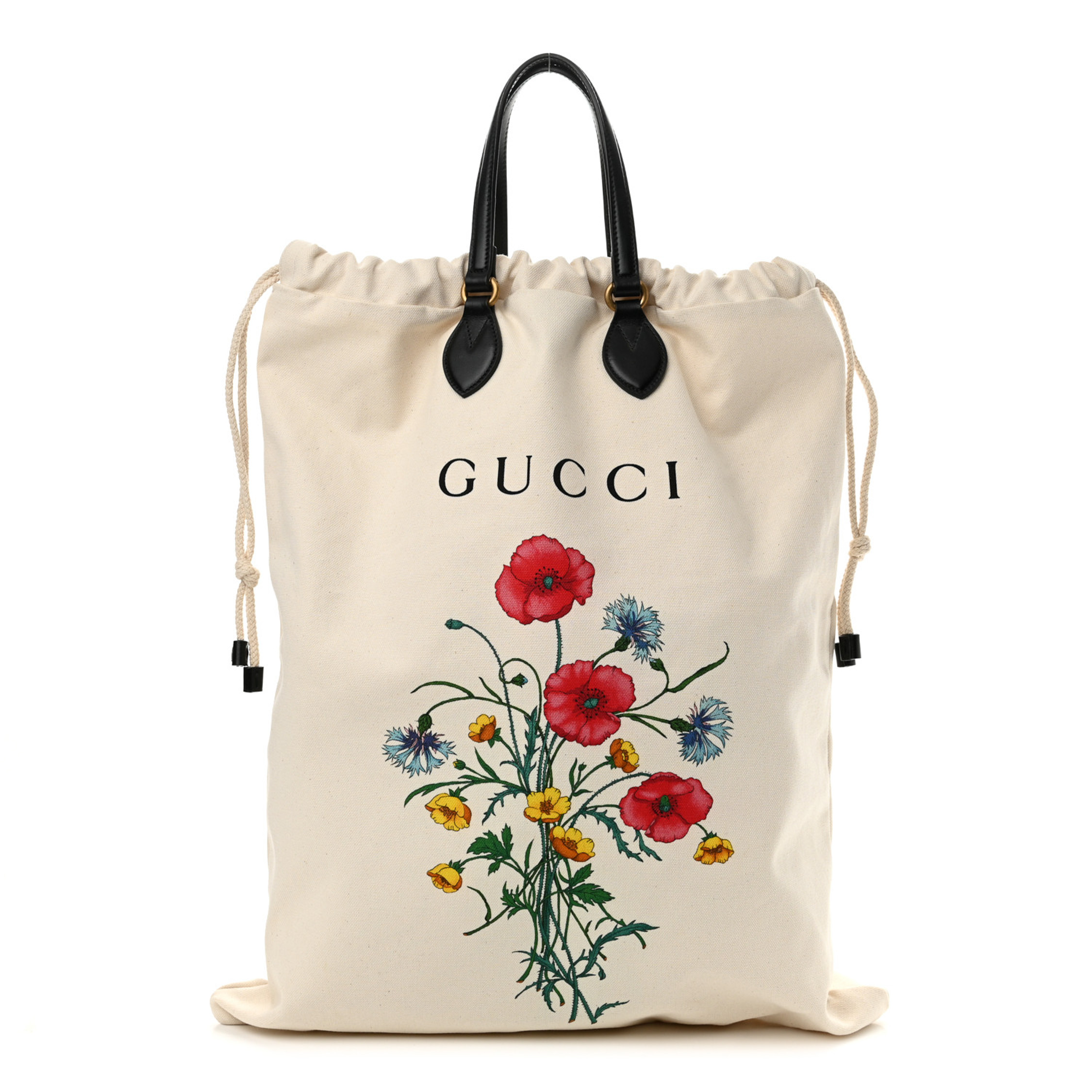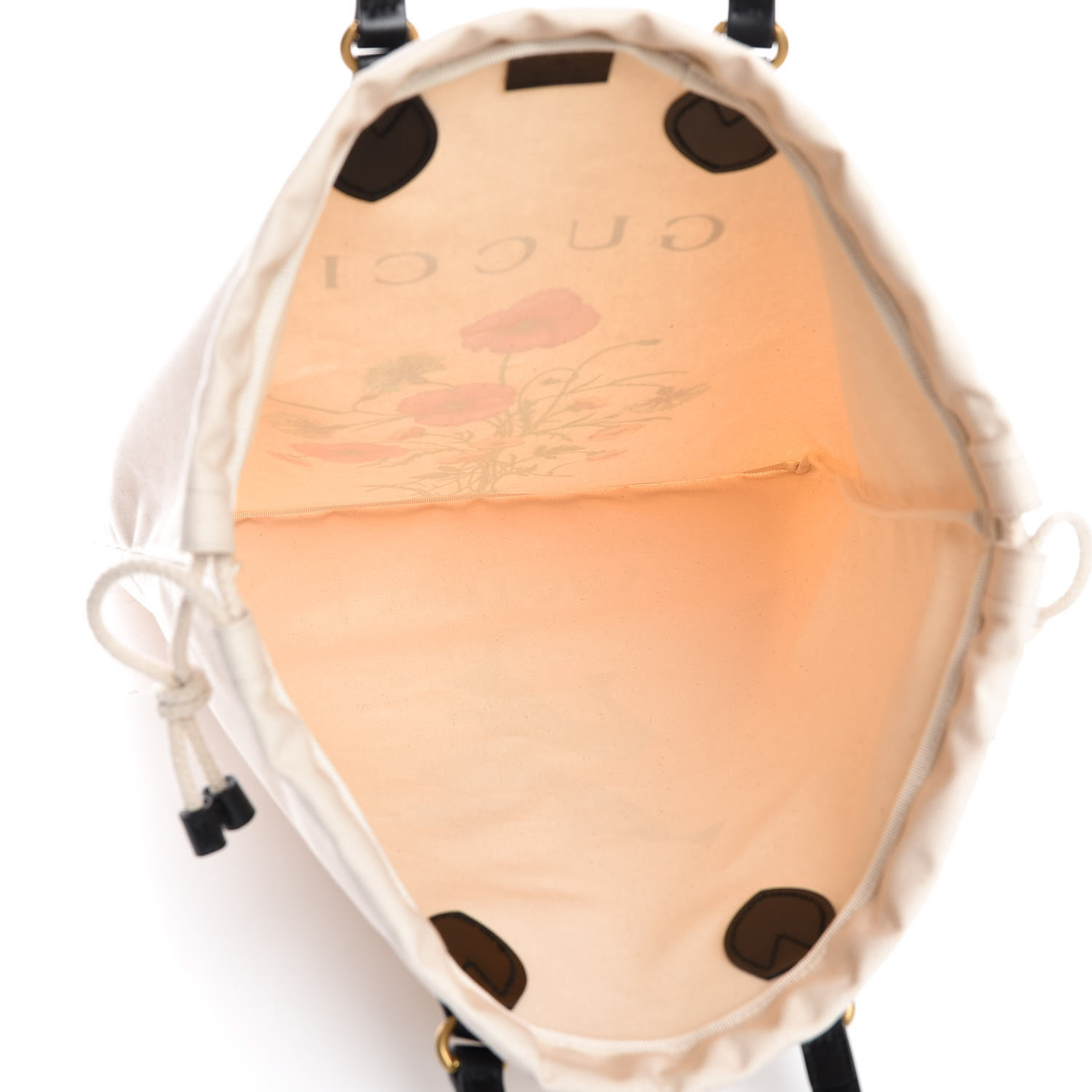 Gucci NEW Chateau Marmont Laundry Beige Canvas Leather Drawstring Tote Bag