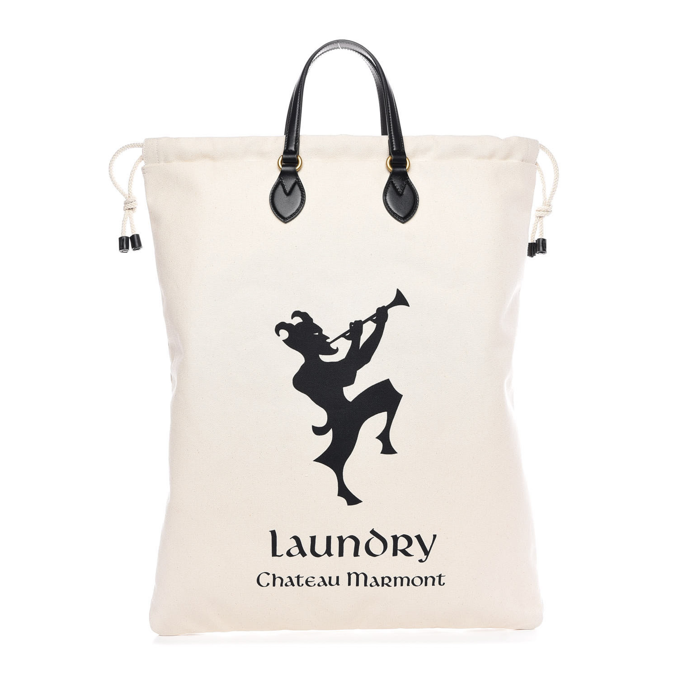 • Style: Chateau Marmont Beige Canvas Black Leather Drawstring Tote Bag