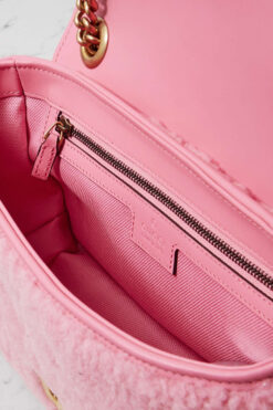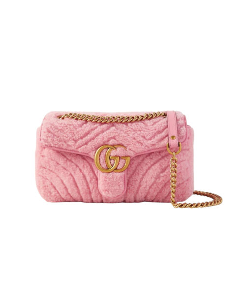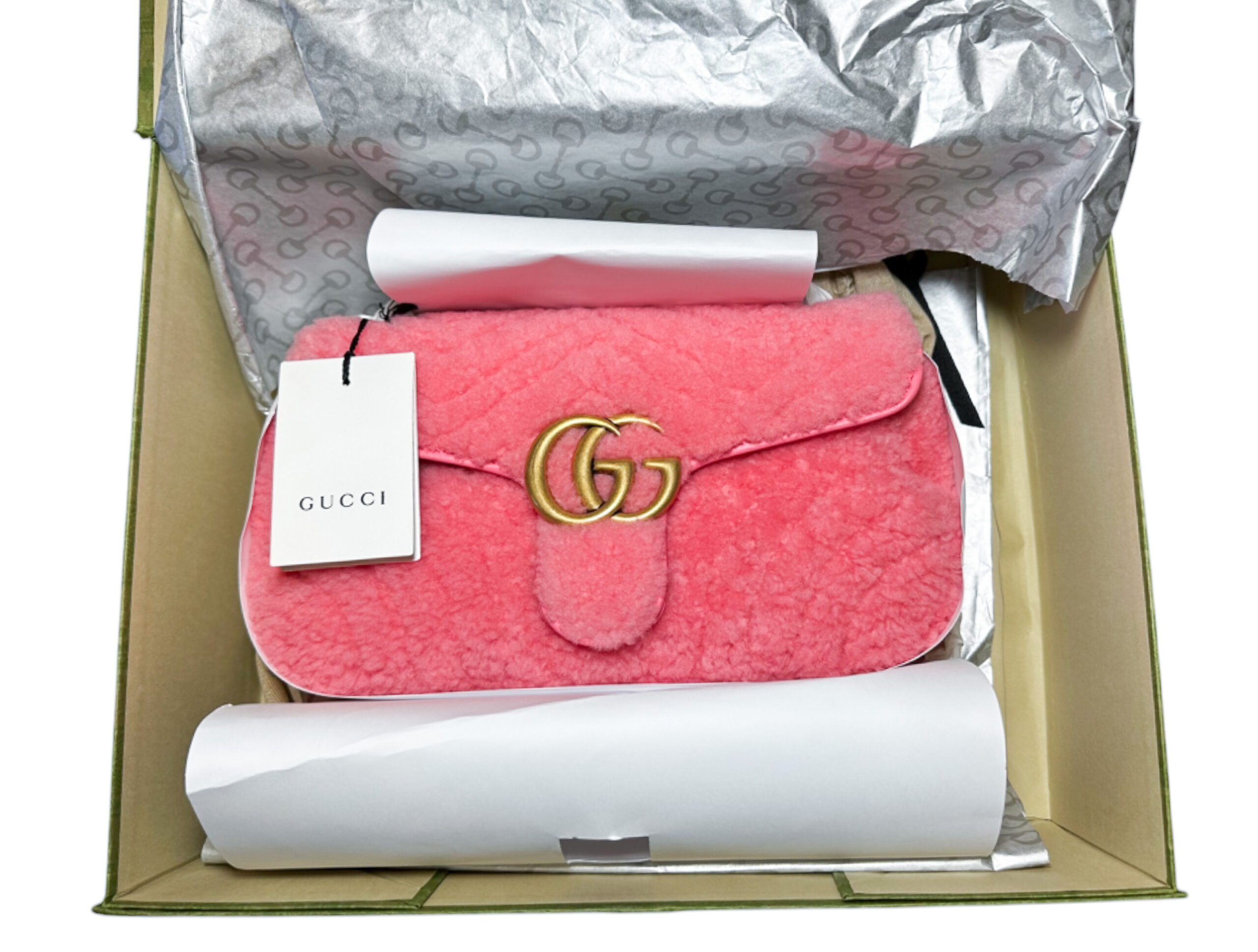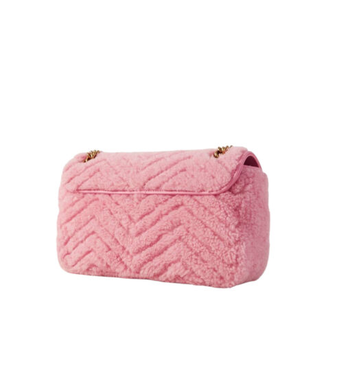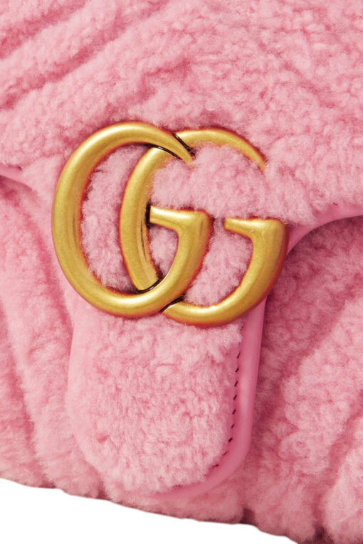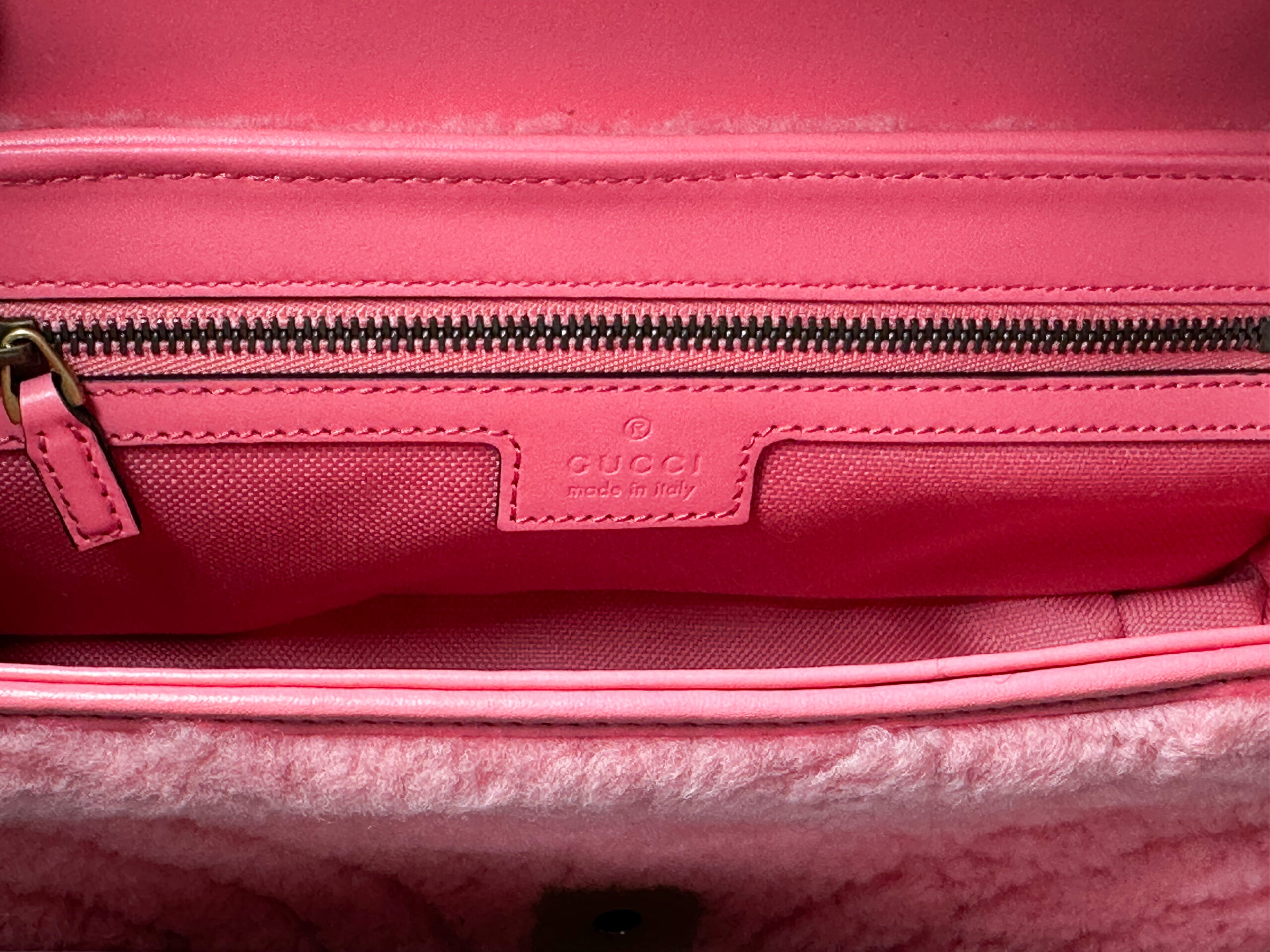 Gucci NEW GG Marmont 2.0 Pink Shearling Matelassé Crossbody Chain Shoulder Bag