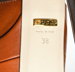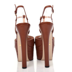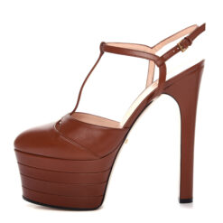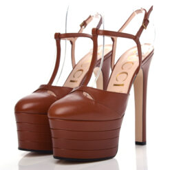 - Style: ANGEL BROWN LEATHER STACKED PLATFORM T-STRAP HEELS PUMPS