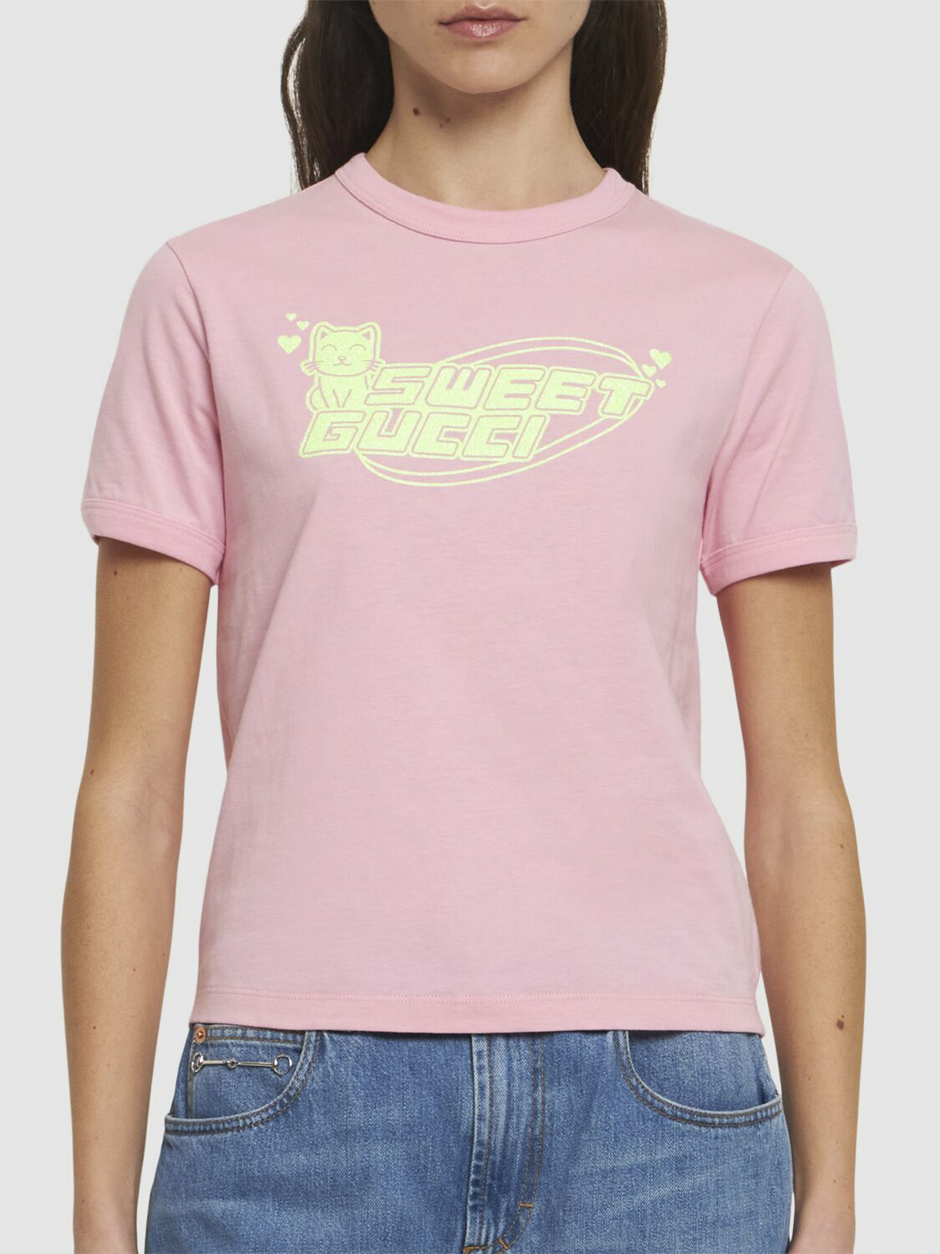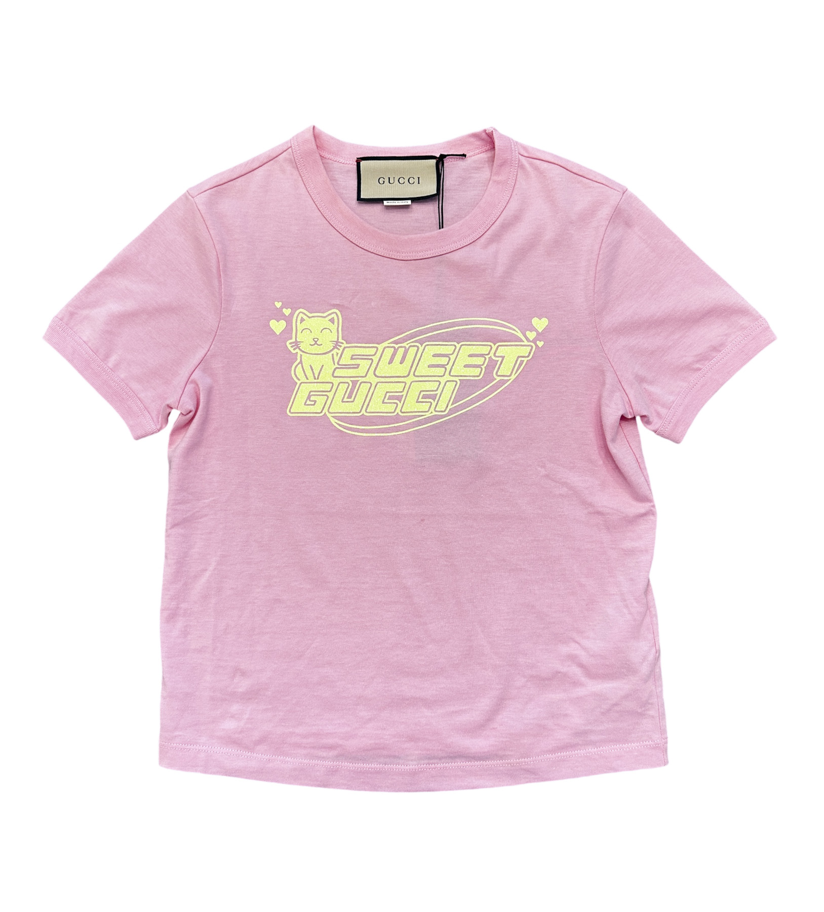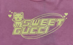 - Style: Pink Sweet Gucci Logo Kitten Graphic Shirt Top Blouse