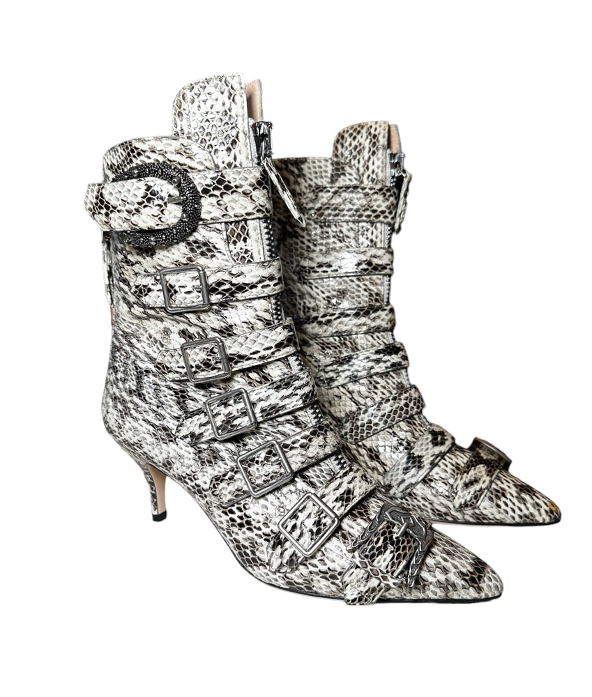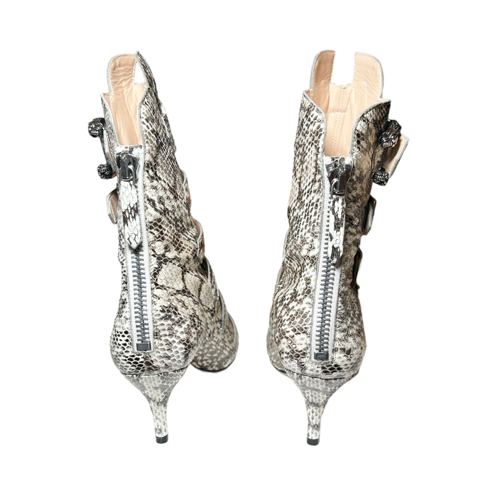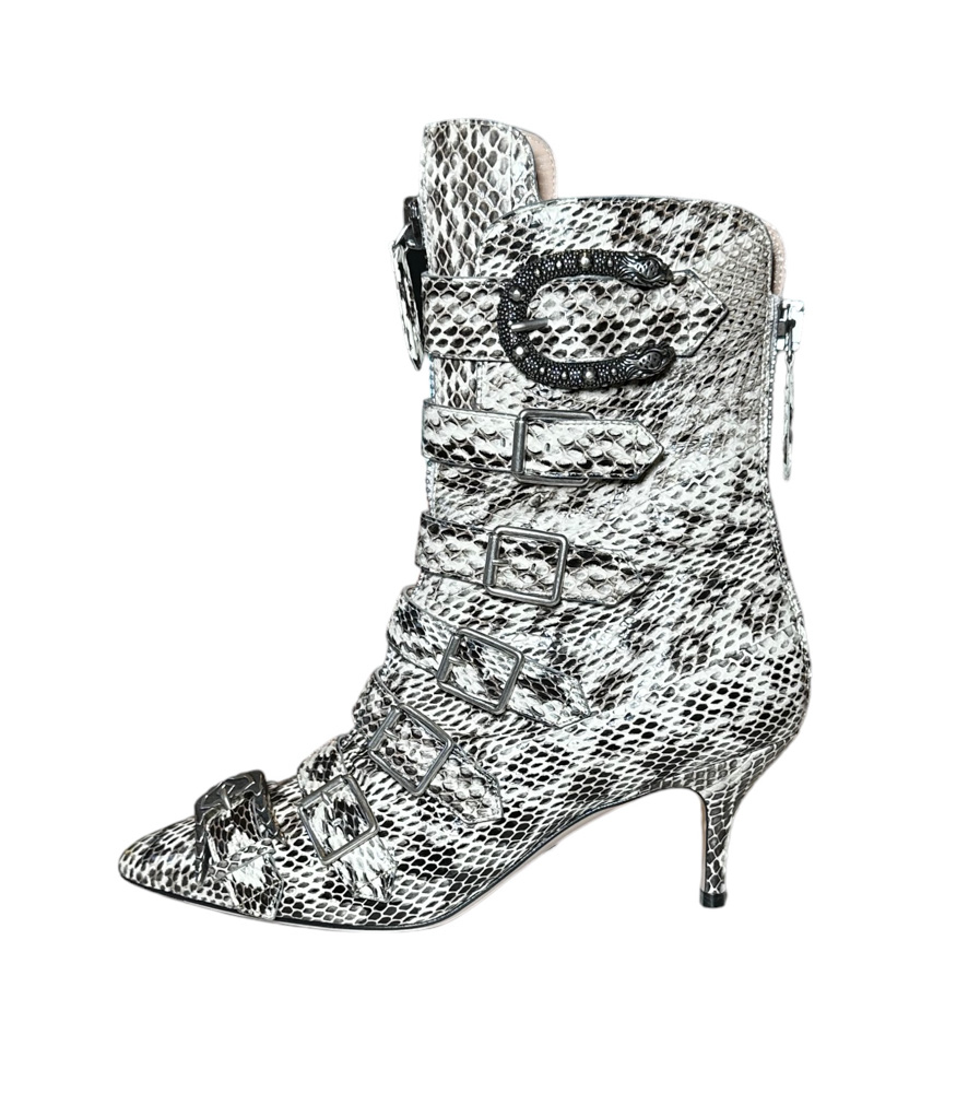- Style: Dionysus Pointed Toe Buckle Kitten Heel Ankle Boots