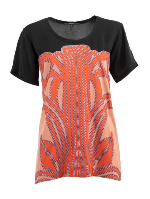 - Style: Metallic Jacquard Silk Crew Neck Short Sleeve Runway Top Blouse