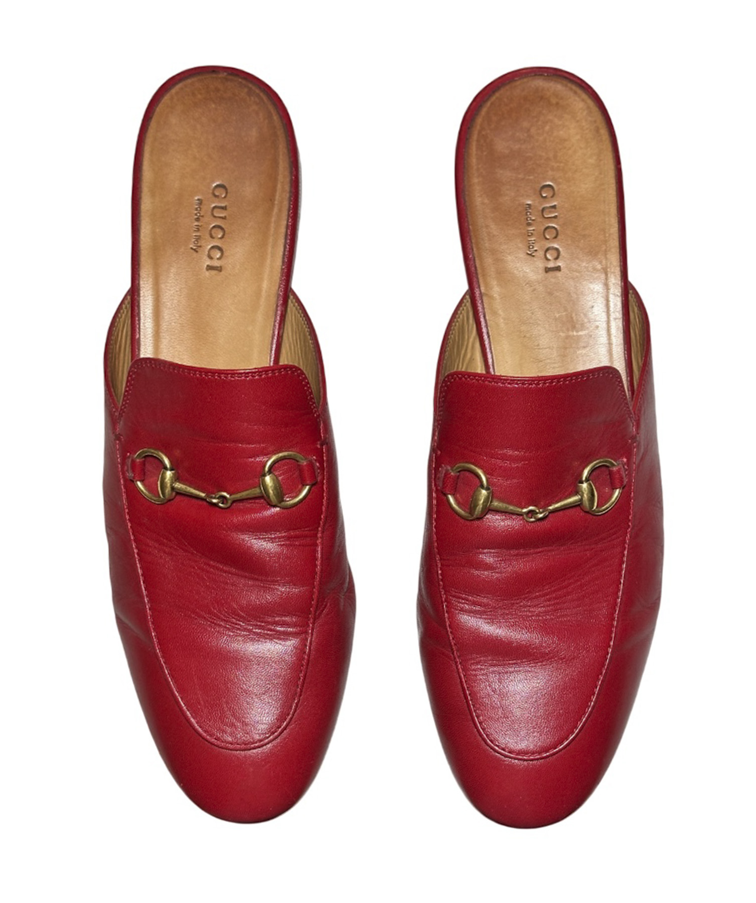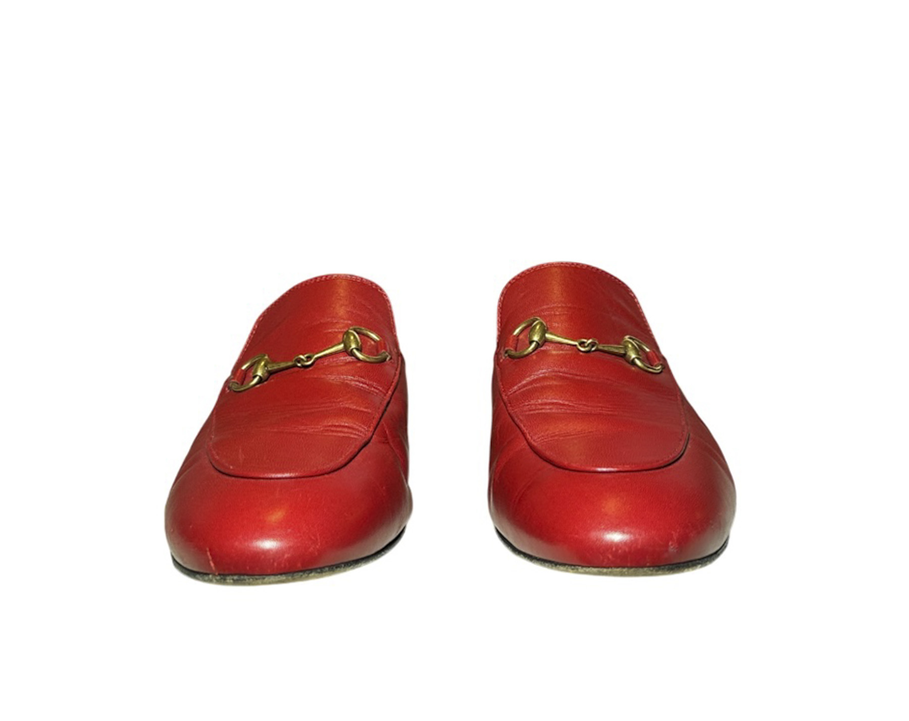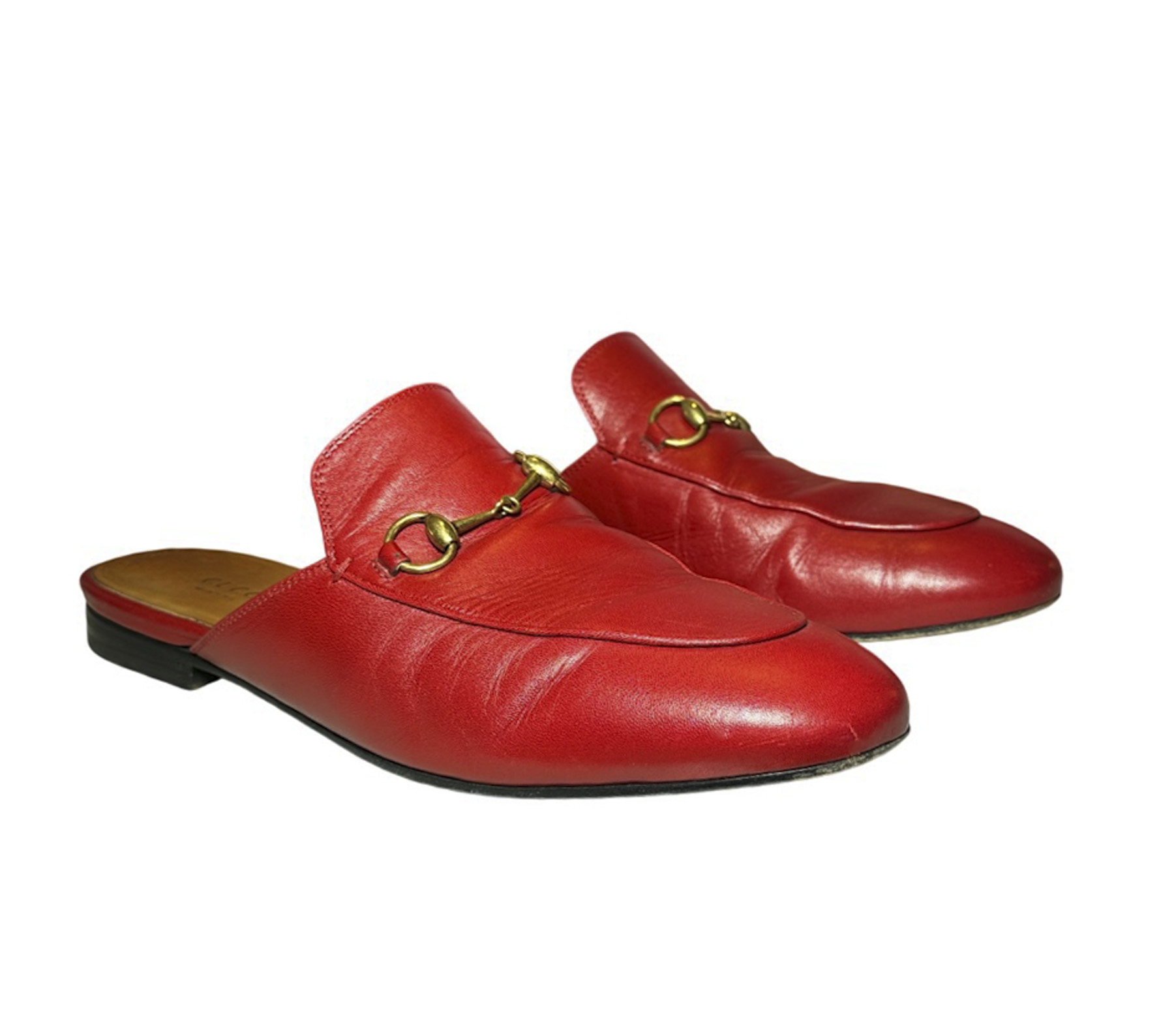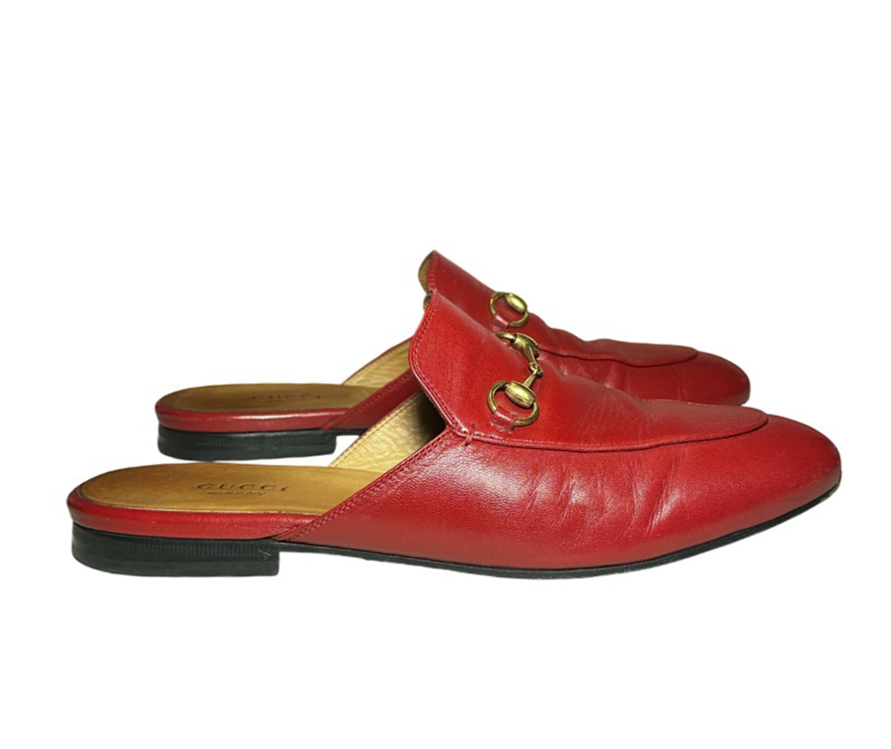 - Style: Princetown Red Leather Horsebit Mules Loafers Flats