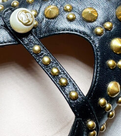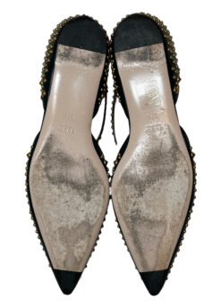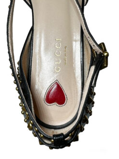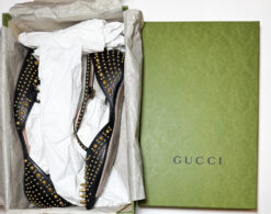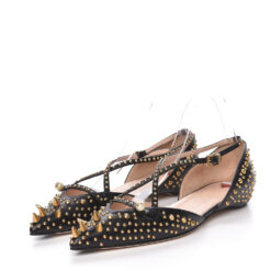 Gucci Women’s Unia Spiked GG Pointed Toe Ankle Strap Flats 37.5 Black