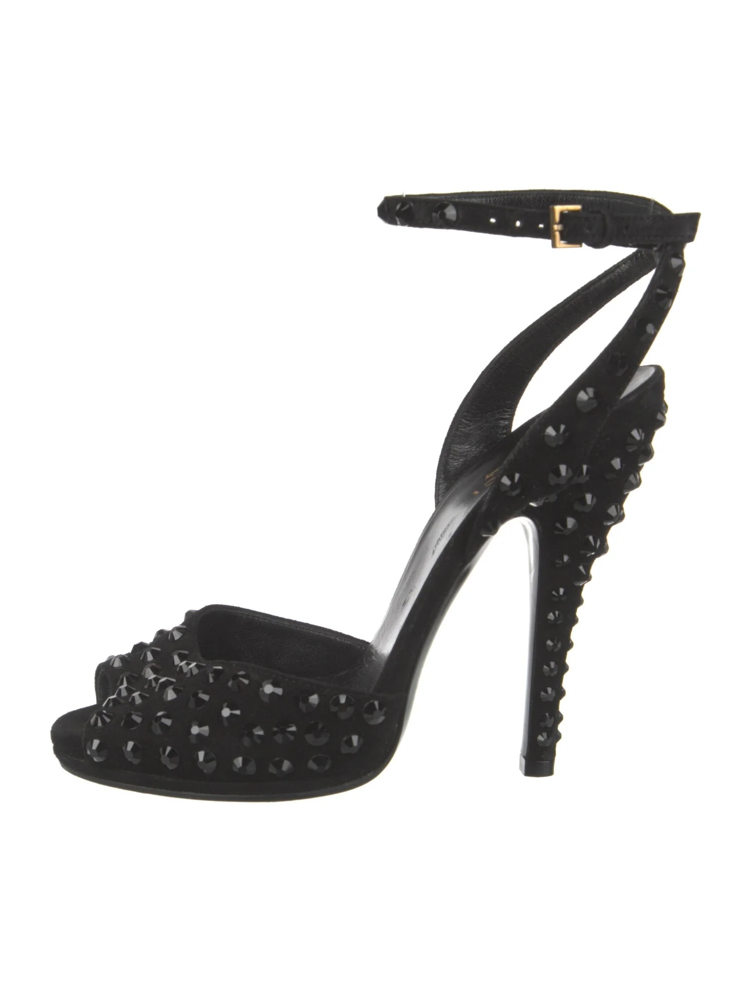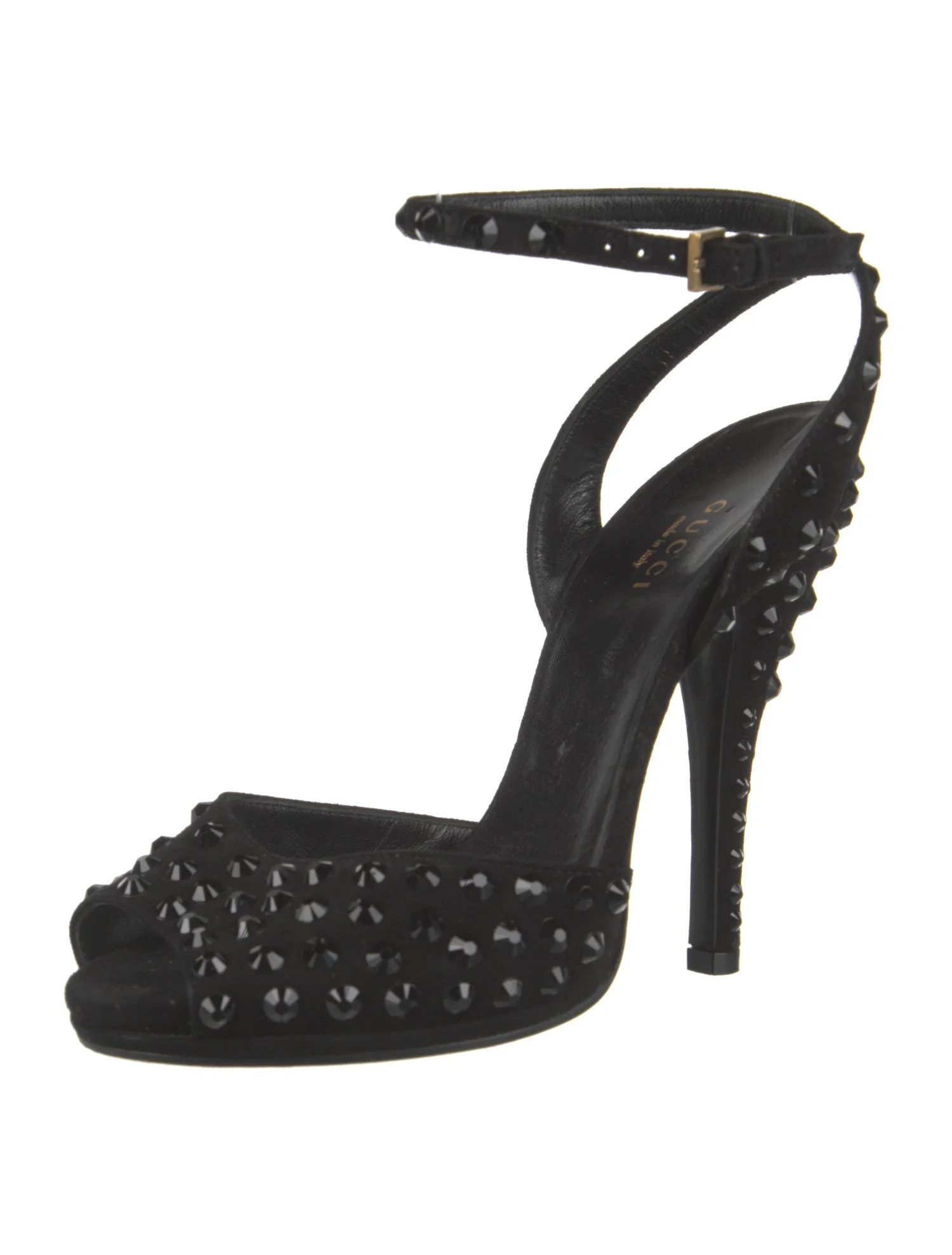 - Style: Yulia Black Suede Crystal Embellished Peep Toe Sandals Heels