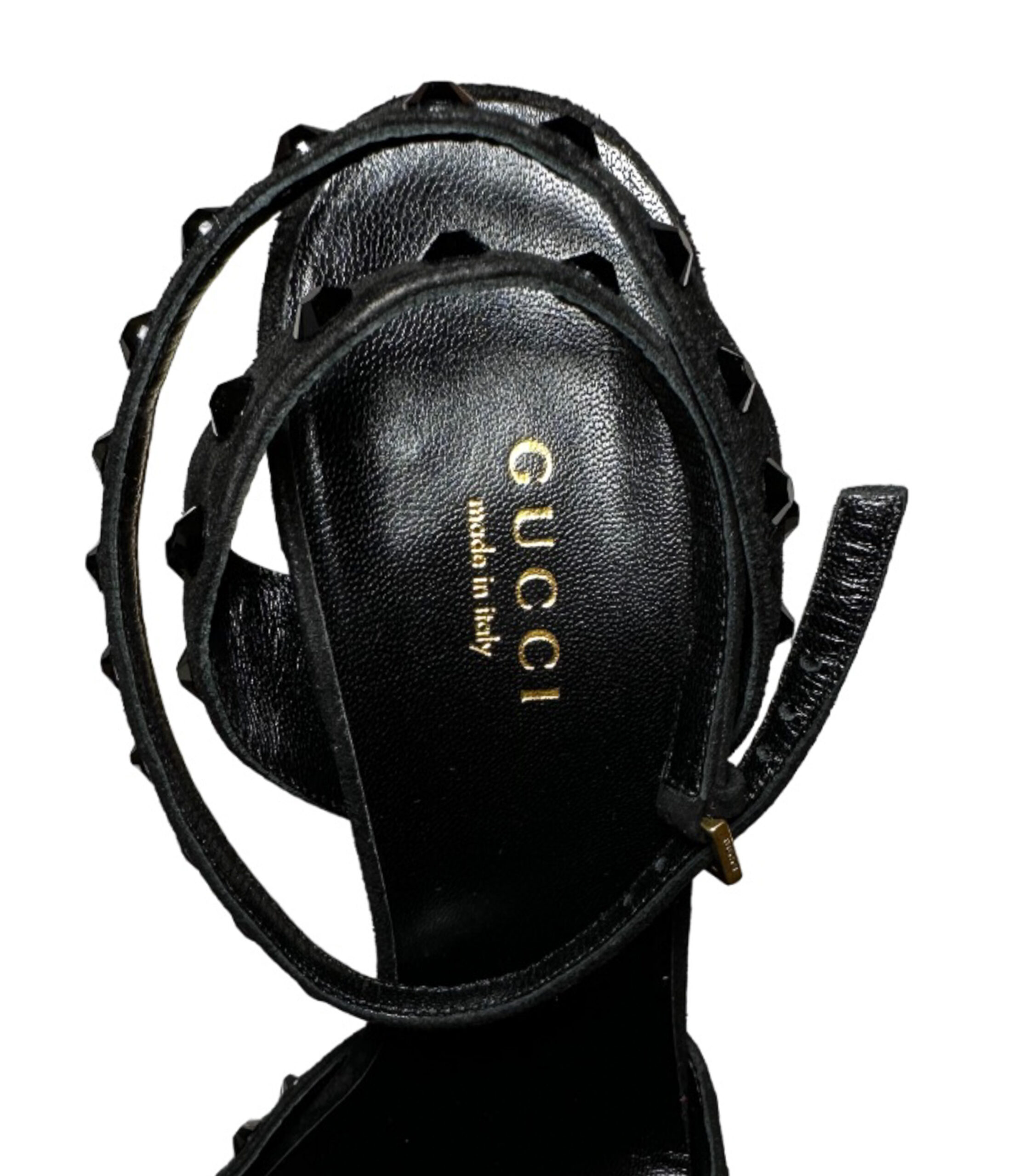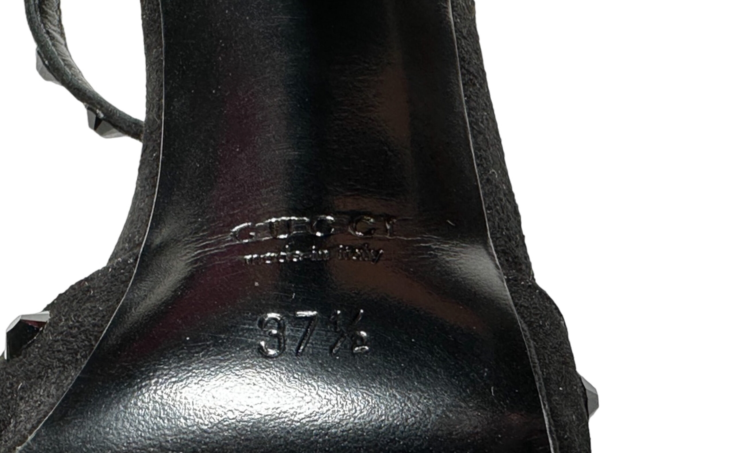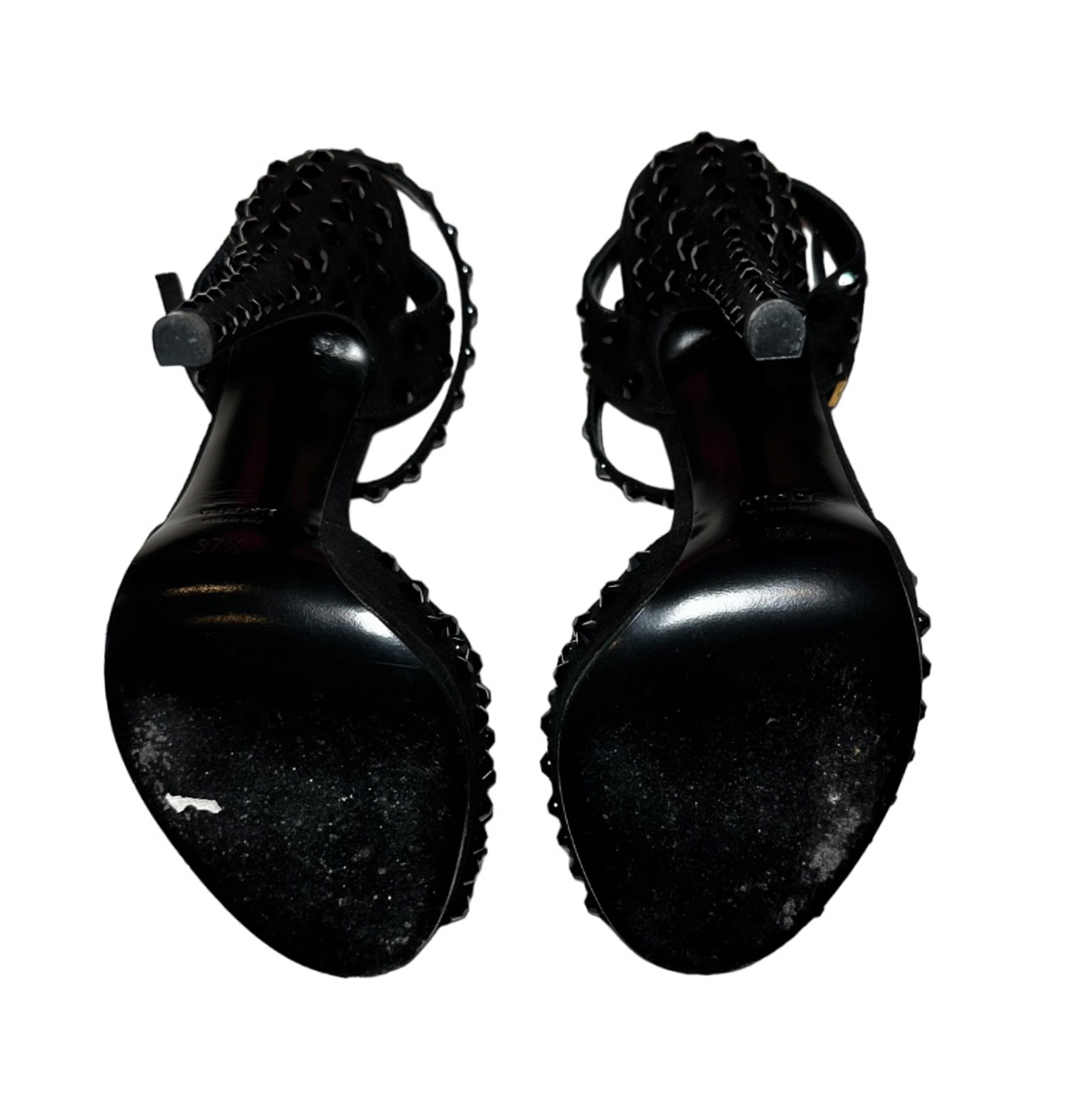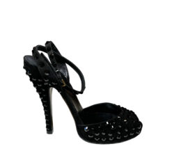- Style: Yulia Black Suede Crystal Embellished Peep Toe Sandals Heels