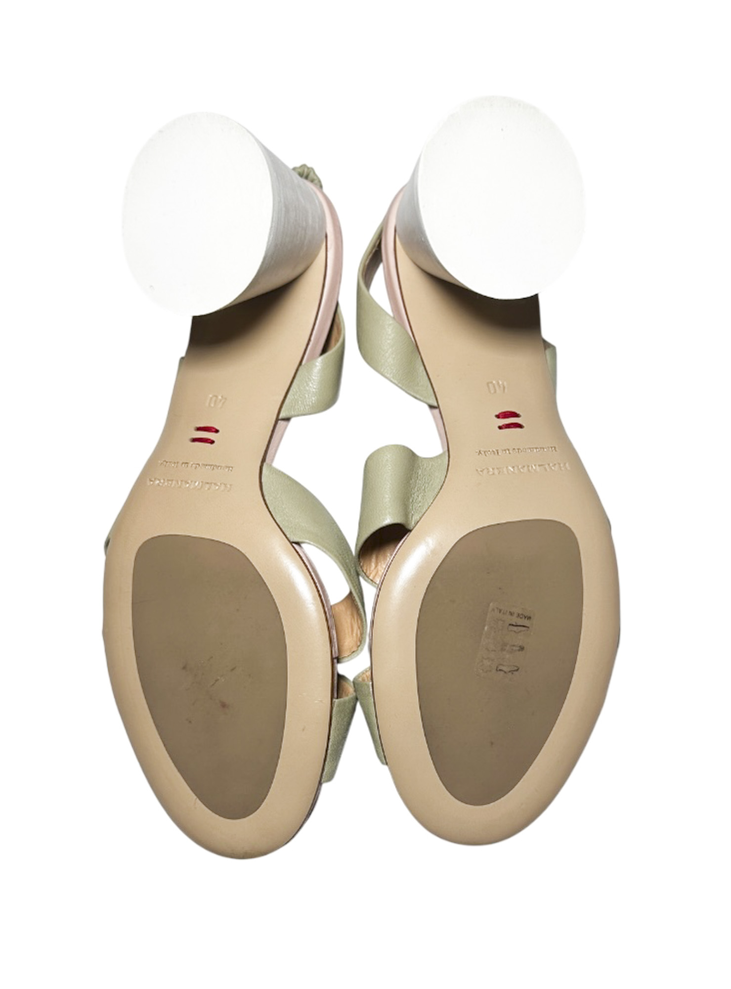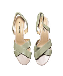 - Style: Green Leather Criss Cross Slingback Heels Sandals