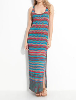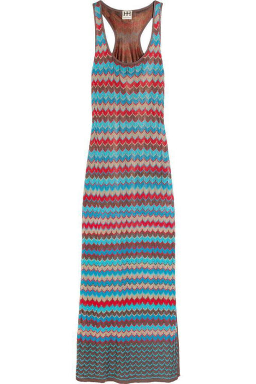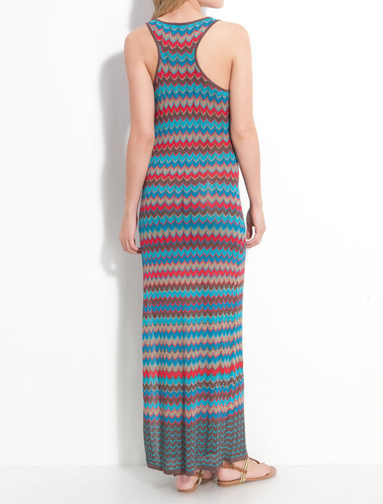 Haute Hippie Women’s Flame Chevron Stripe Racerback Long Maxi Dress Medium