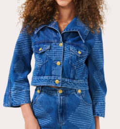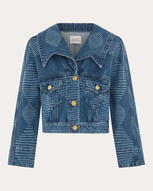 - Style: Aztec Denim Statement Collar Bell Sleeve Jacket