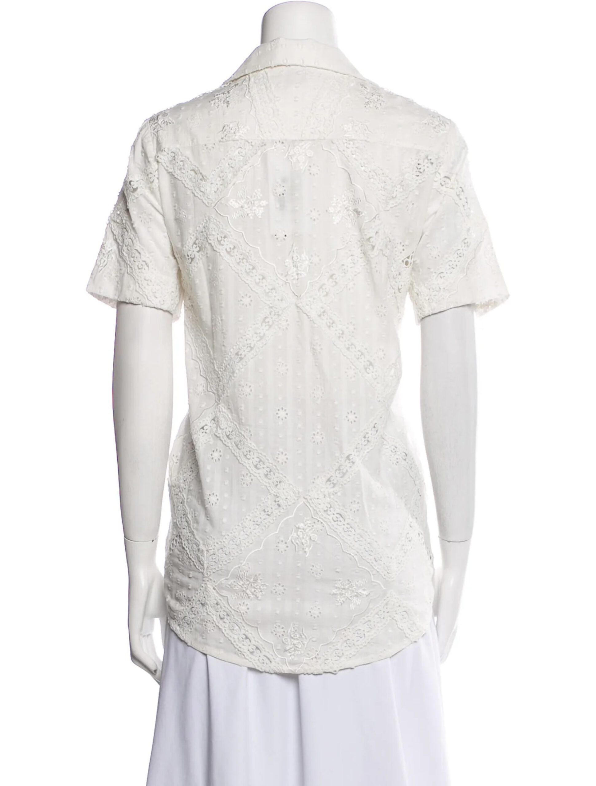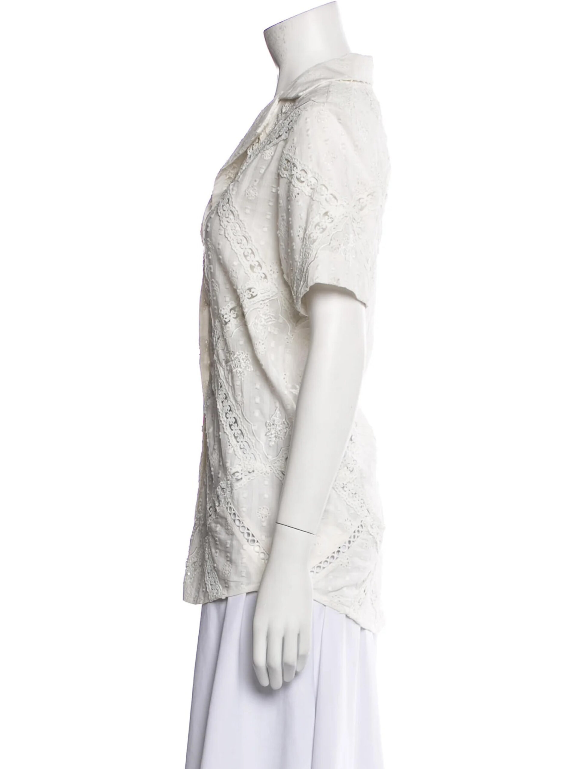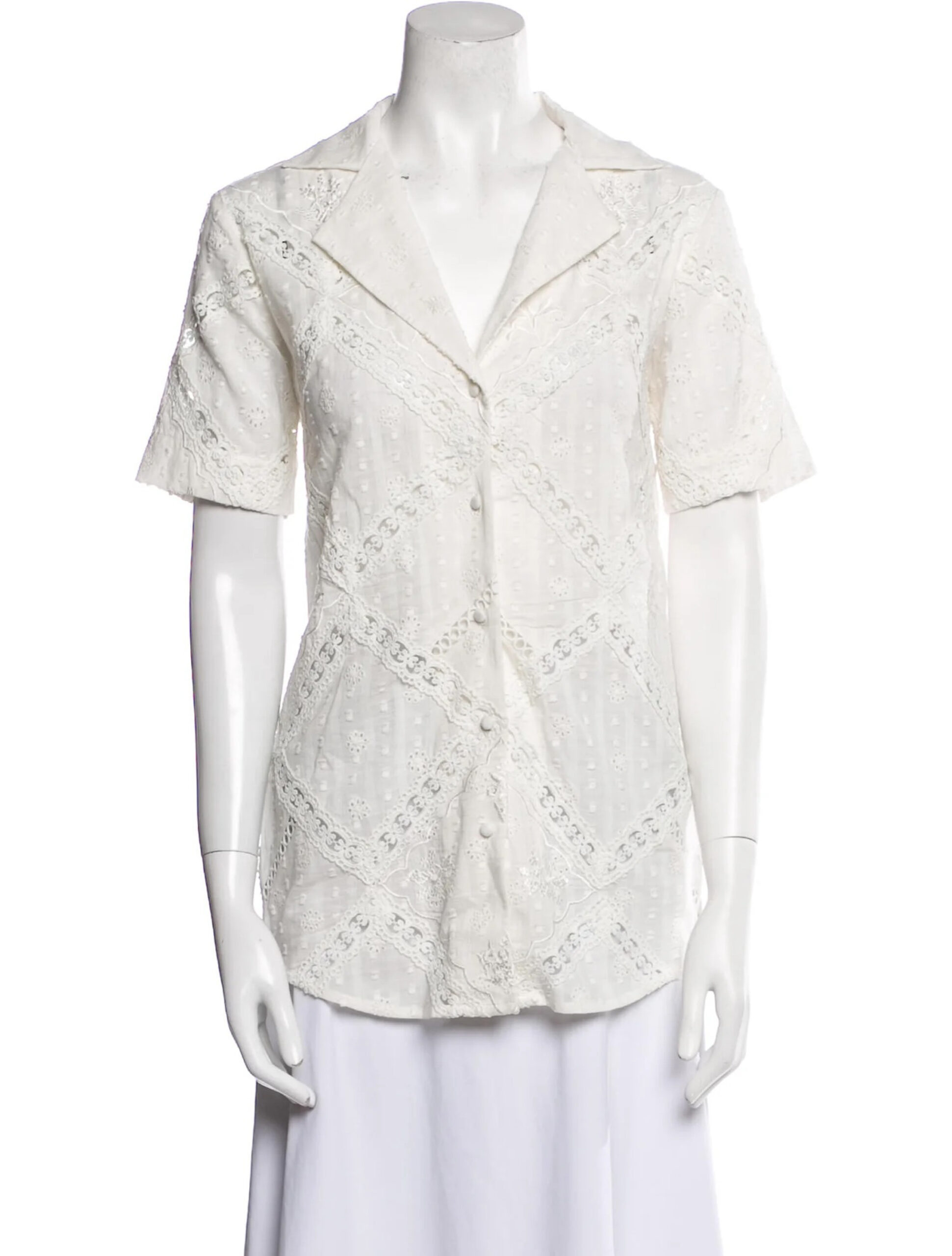 - Style: White Lace Short Sleeve Button Up Top Blouse