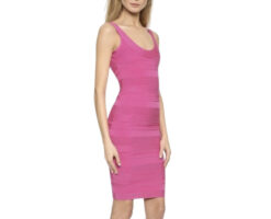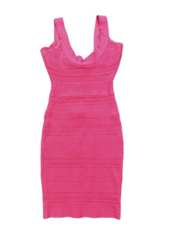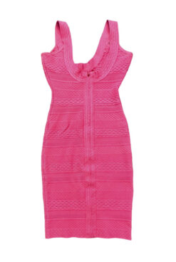 Herve Leger Lily Kate Hot Pink Scoop Neck Bandage Bodycon Mini Dress Size XS