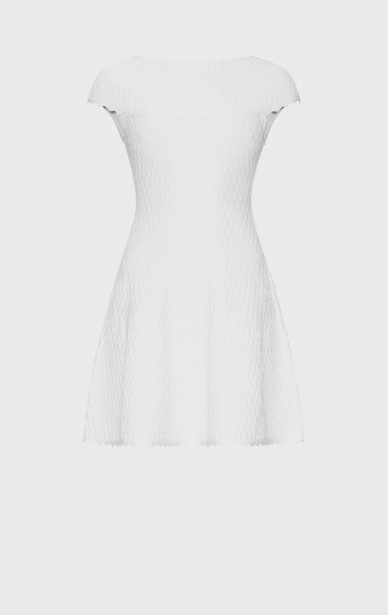 - Style: Alabaster Off Shoulder Flair Skirt Bandage Mini Dress