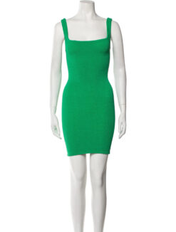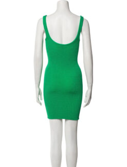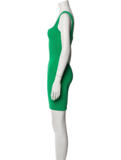 Hunza G Green Square Neck Crinkle Ruched Sleeveless Mini Tank Dress One Size
