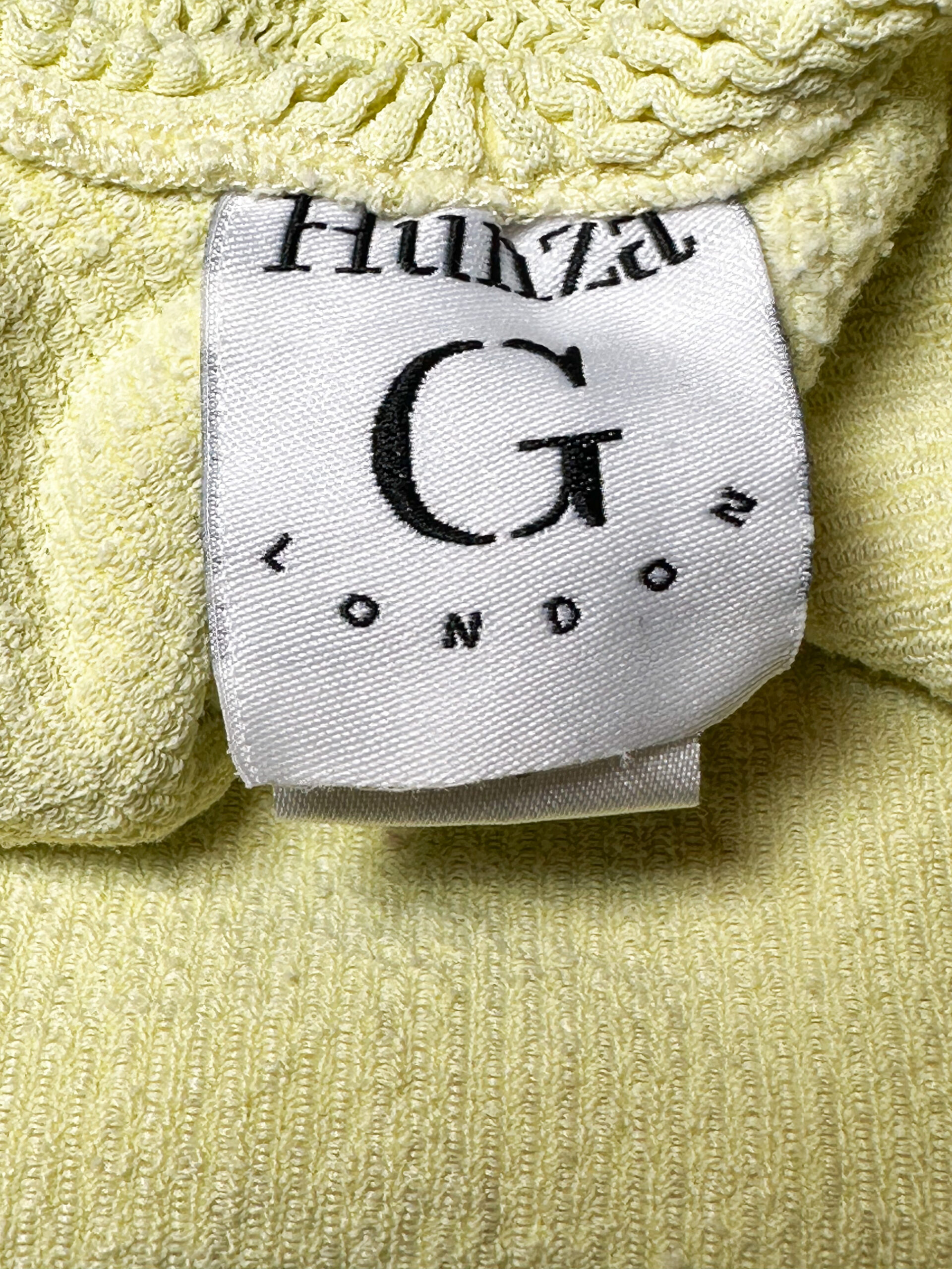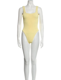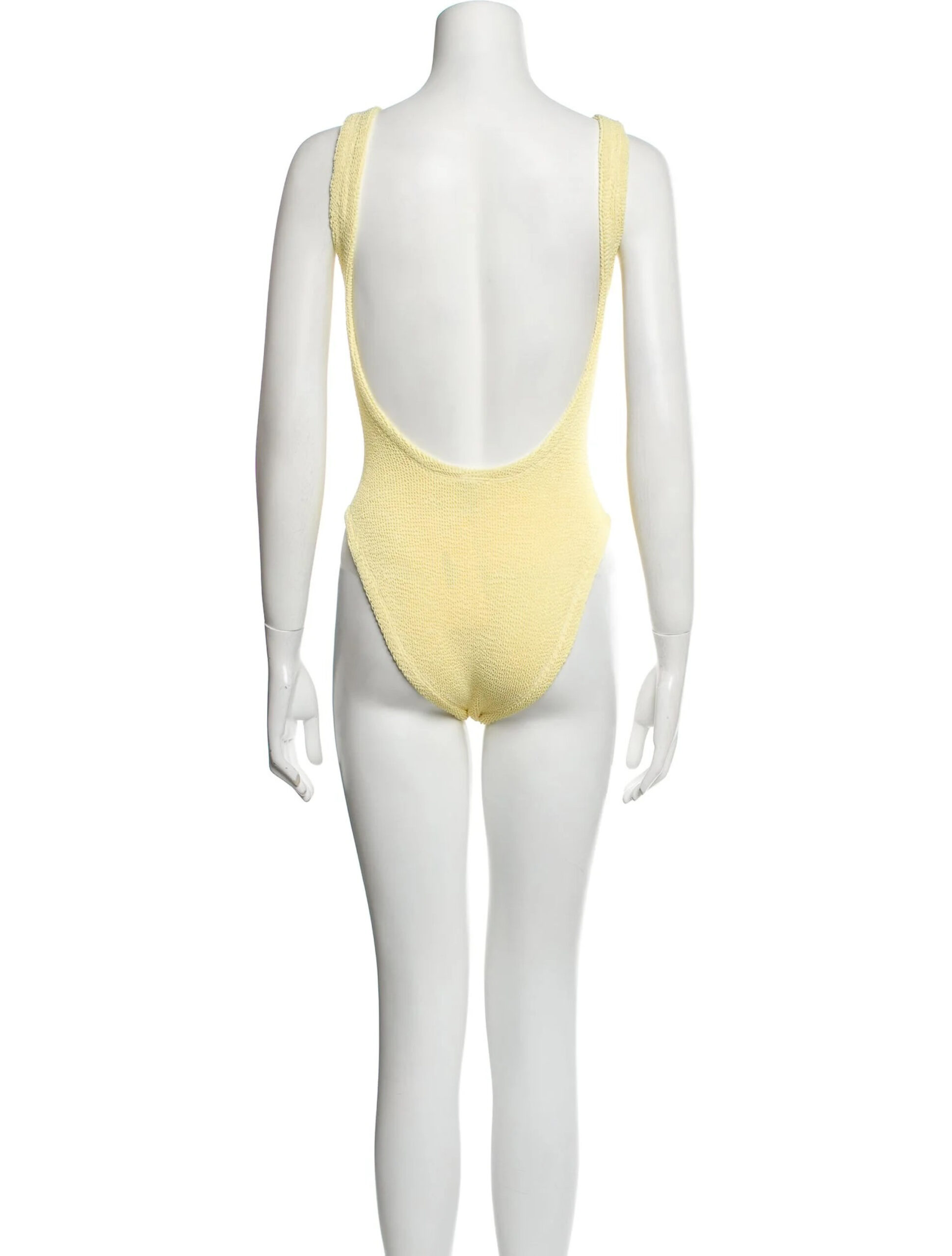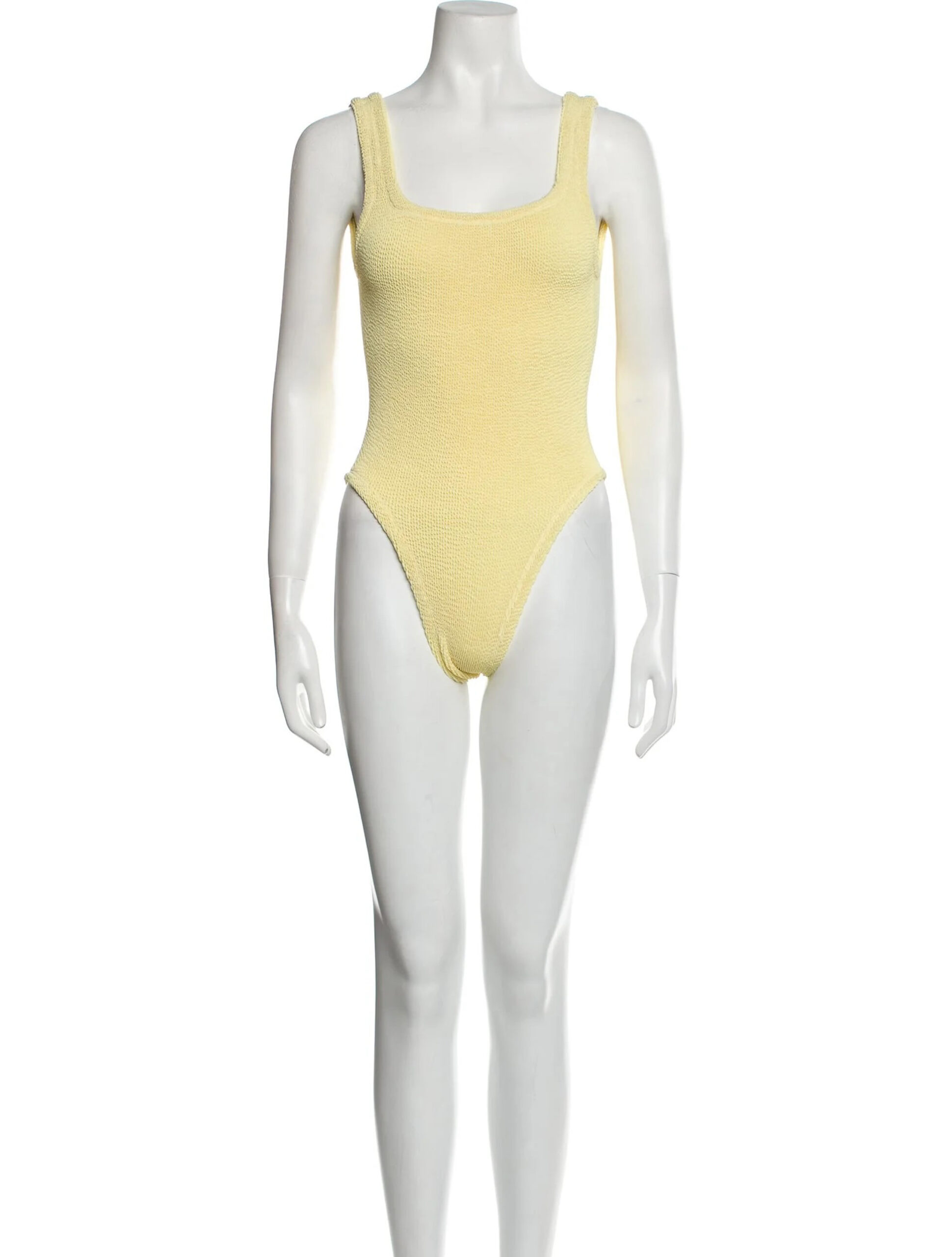 Hunza G Yellow Square Neck Crinkle Ruched One Piece Swimsuit One Size
