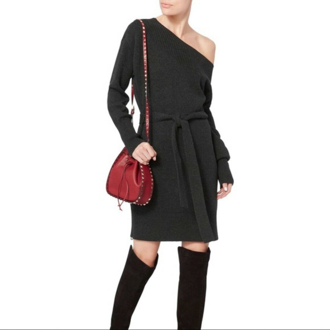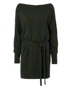 - Style: BETSEE OFF THE SHOULDER BELTED SWEATER DRESS (GRAY/GREEN COLOR)