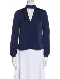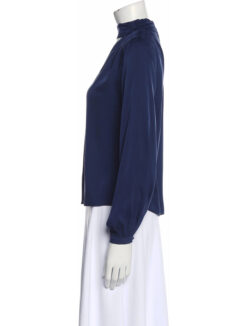 INTERMIX BLUE SILK MOCK NECK LONG SLEEVE TOP BLOUSE SIZE 4