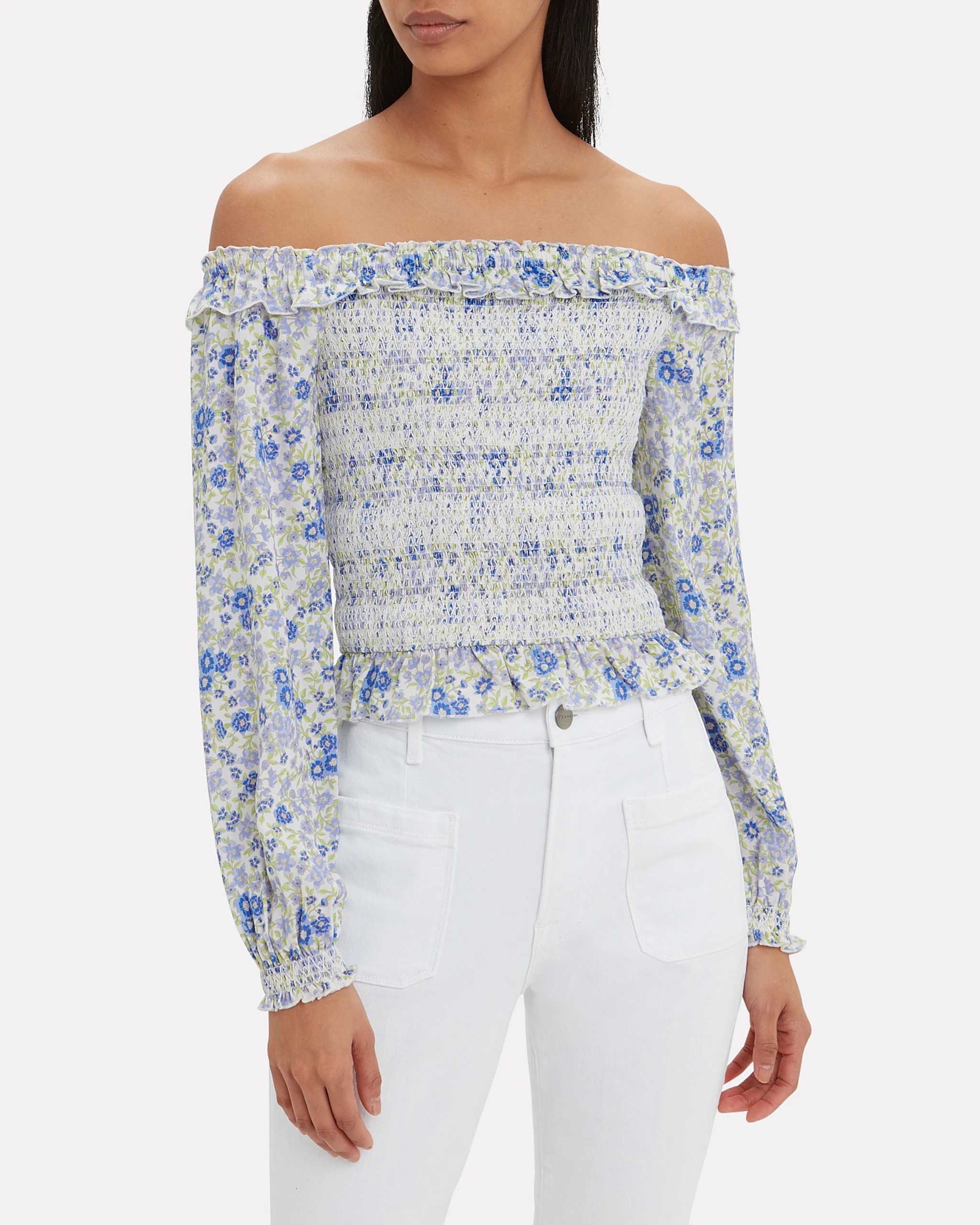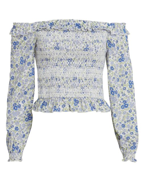 - Style: DOLLY FLORAL PRINT SHIRRED OFF SHOULDER TOP BLOUSE