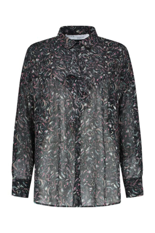 - Style: HARVY SHEER PRINTED RUFFLED SHIRT TOP BLOUSE