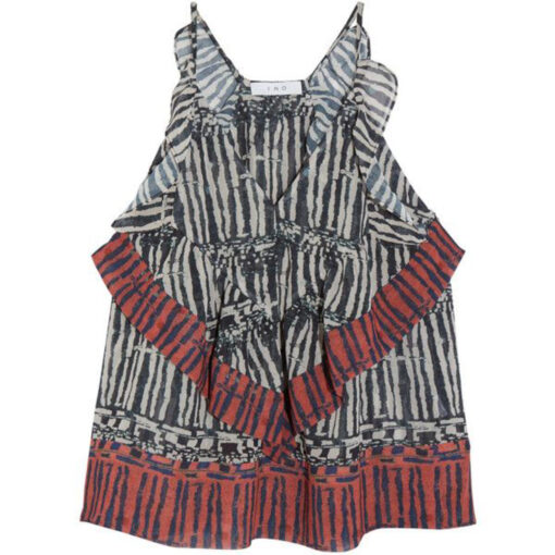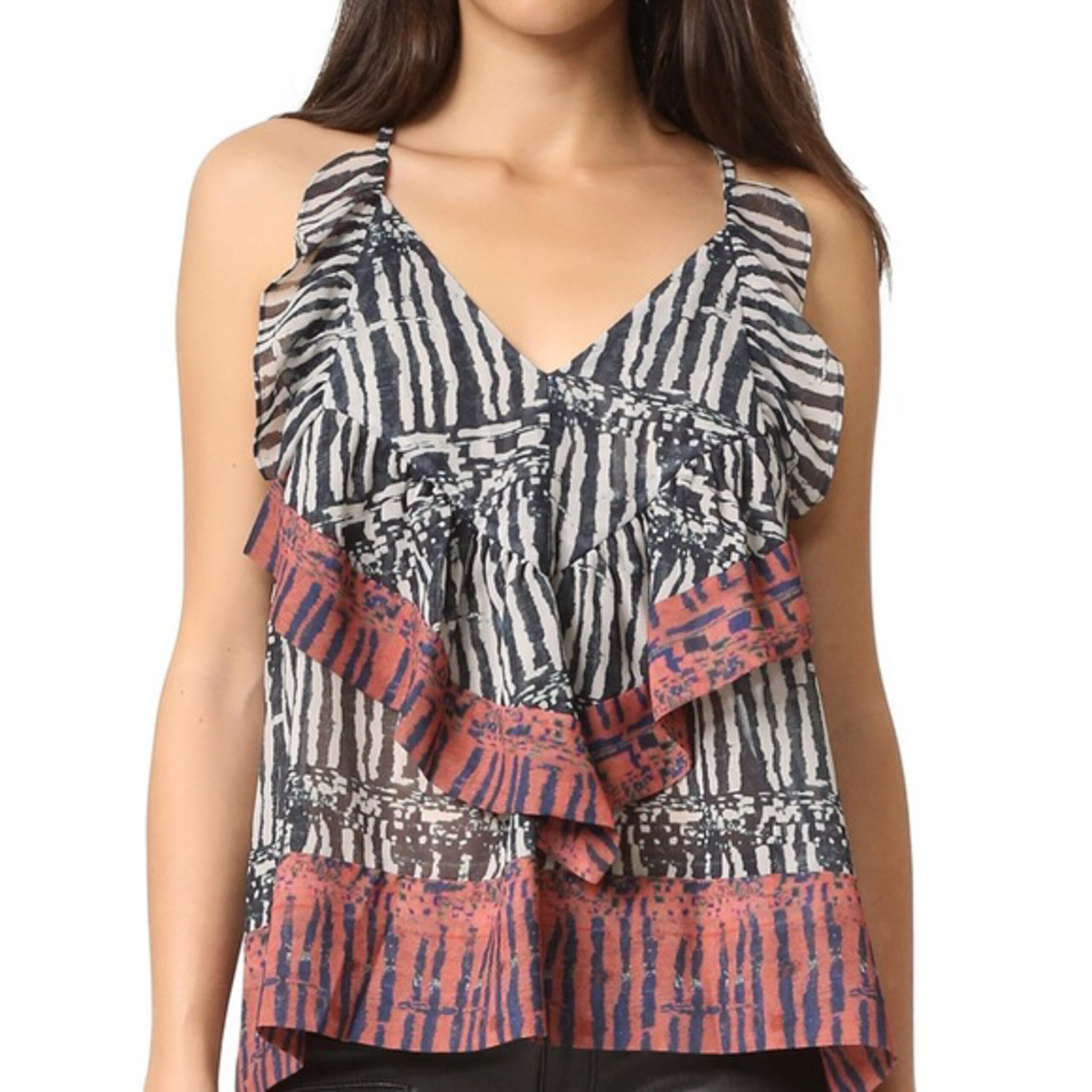 - Style: KAPRINE PRINTED SILK RUFFLED TOP BLOUSE