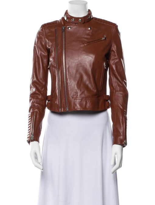 - Style: Luciaspe Lambskin Leather Cognac Moto Biker Jacket