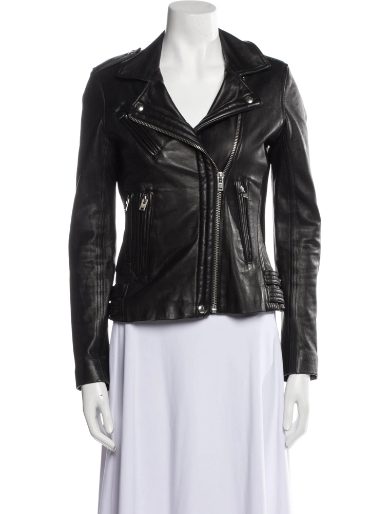 - Style: Vika Lamb Leather Moto Zip Front Jacket