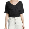 Michelle Mason Black Silk Satin Draped One Sleeve Top Blouse Size 4