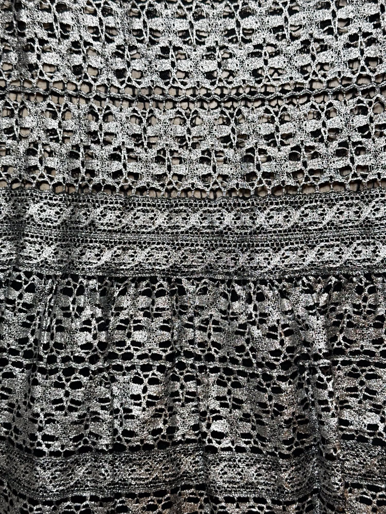 Isabel Marant Metallic Lace Short Sleeve Tiered A-Line Mini Dress 1/Small