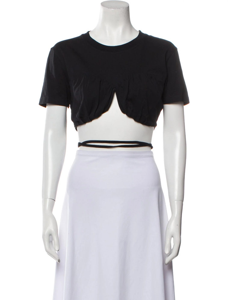 - Style: Black Crew Neck Short Sleeve Cropped Shirt Top Blouse