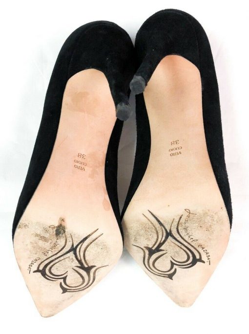 - Style: BLACK SUEDE POINTED CAP TOE PUMPS HEELS