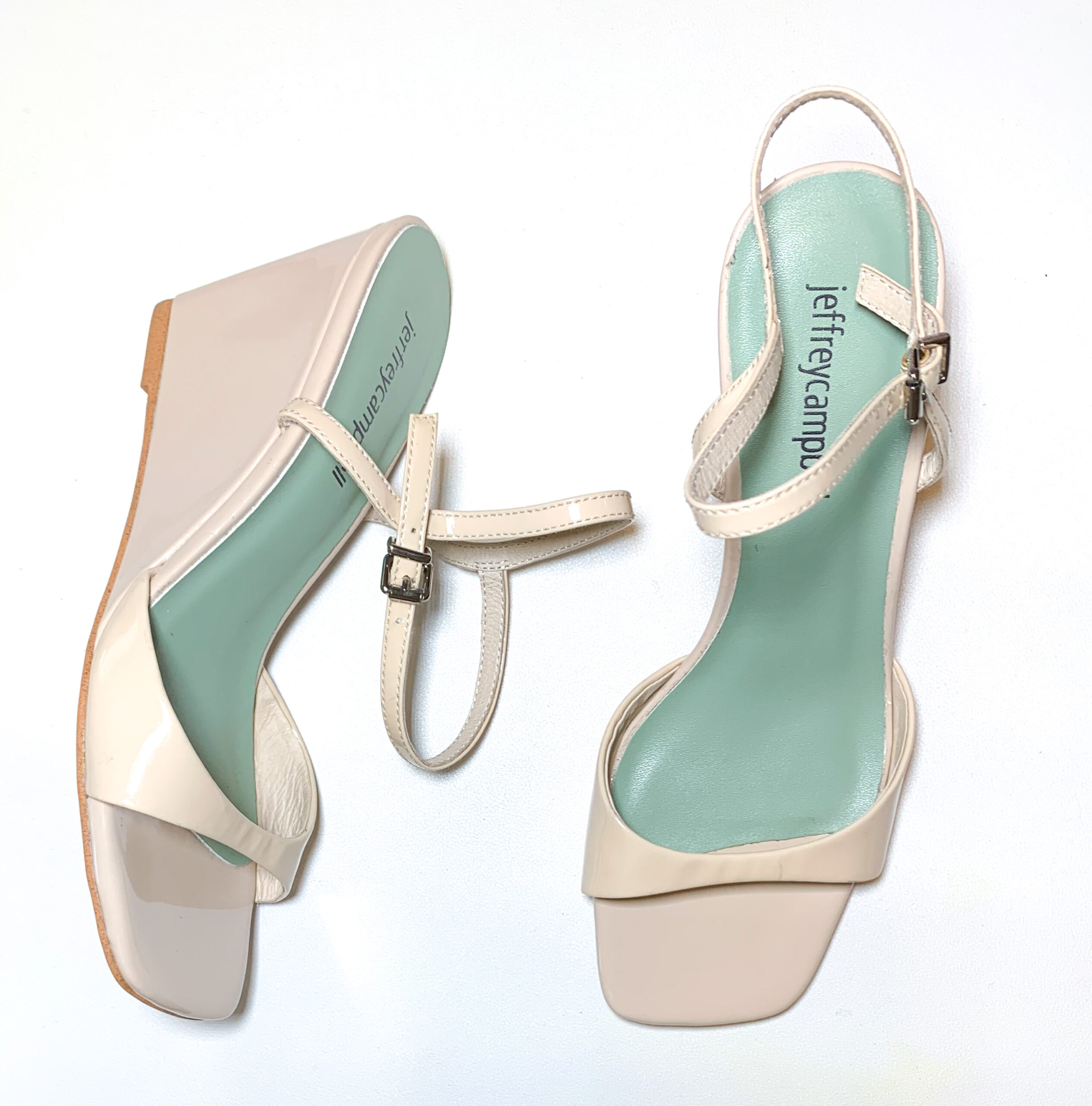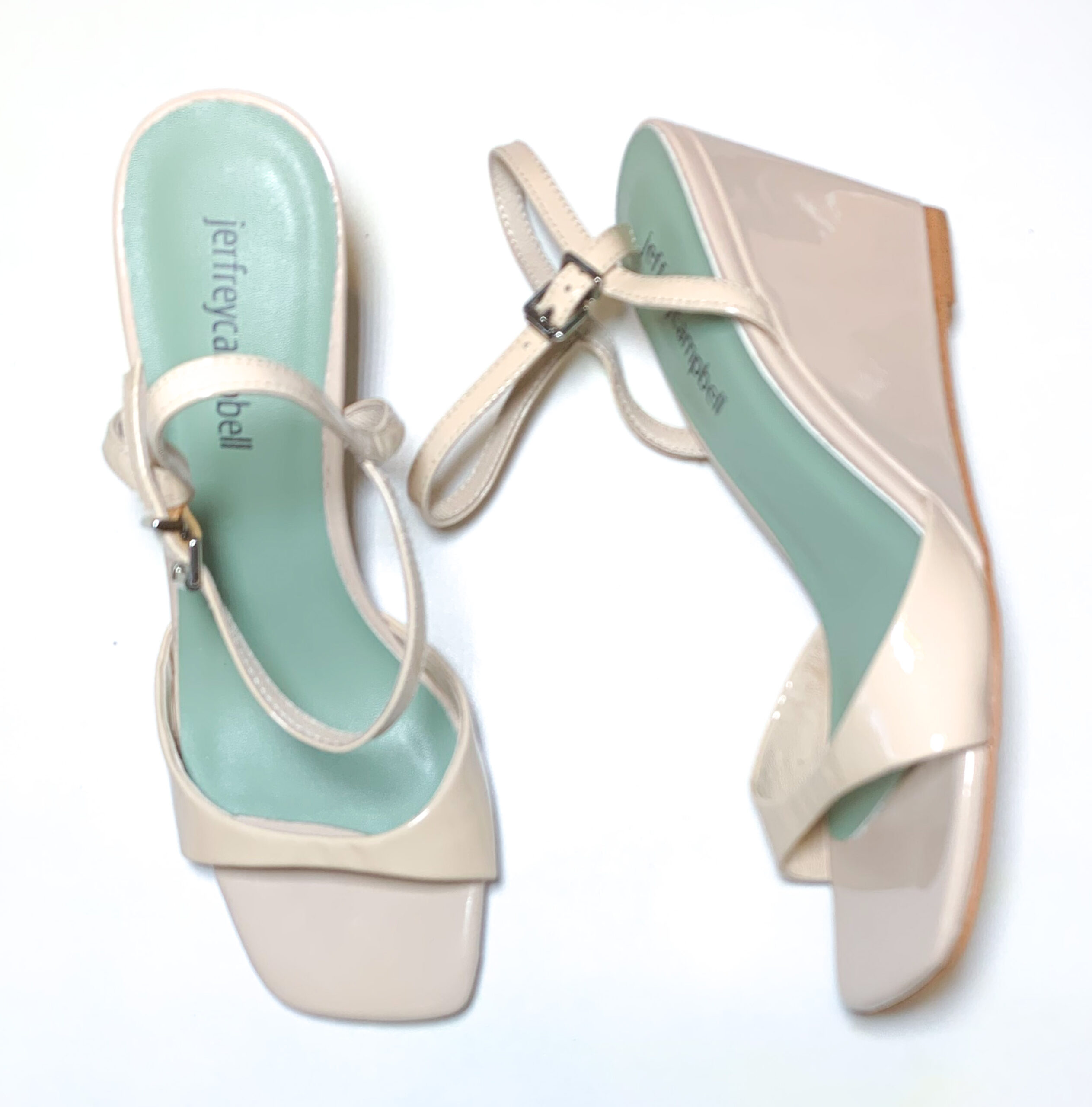 - Style: ENTREE NUDE PATENT WEDGE SANDALS