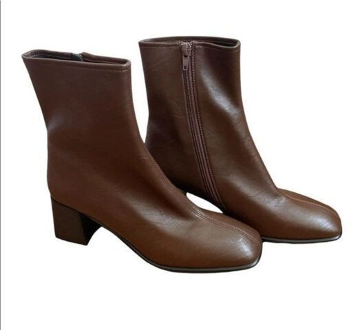 - Style: TROYE BROWN LEATHER SQUARE TOE ANKLE BOOTIES