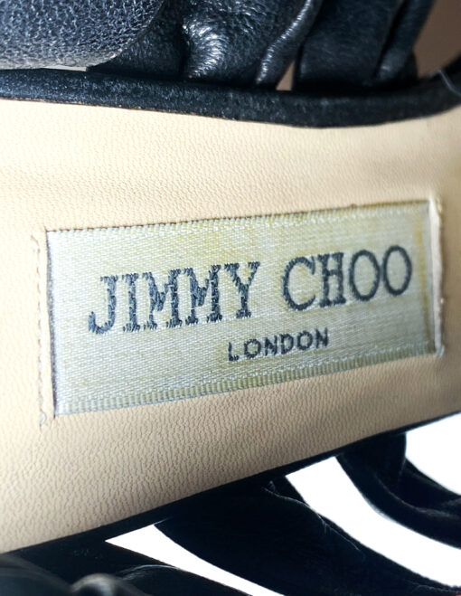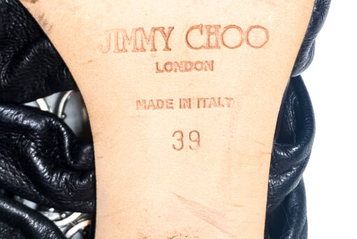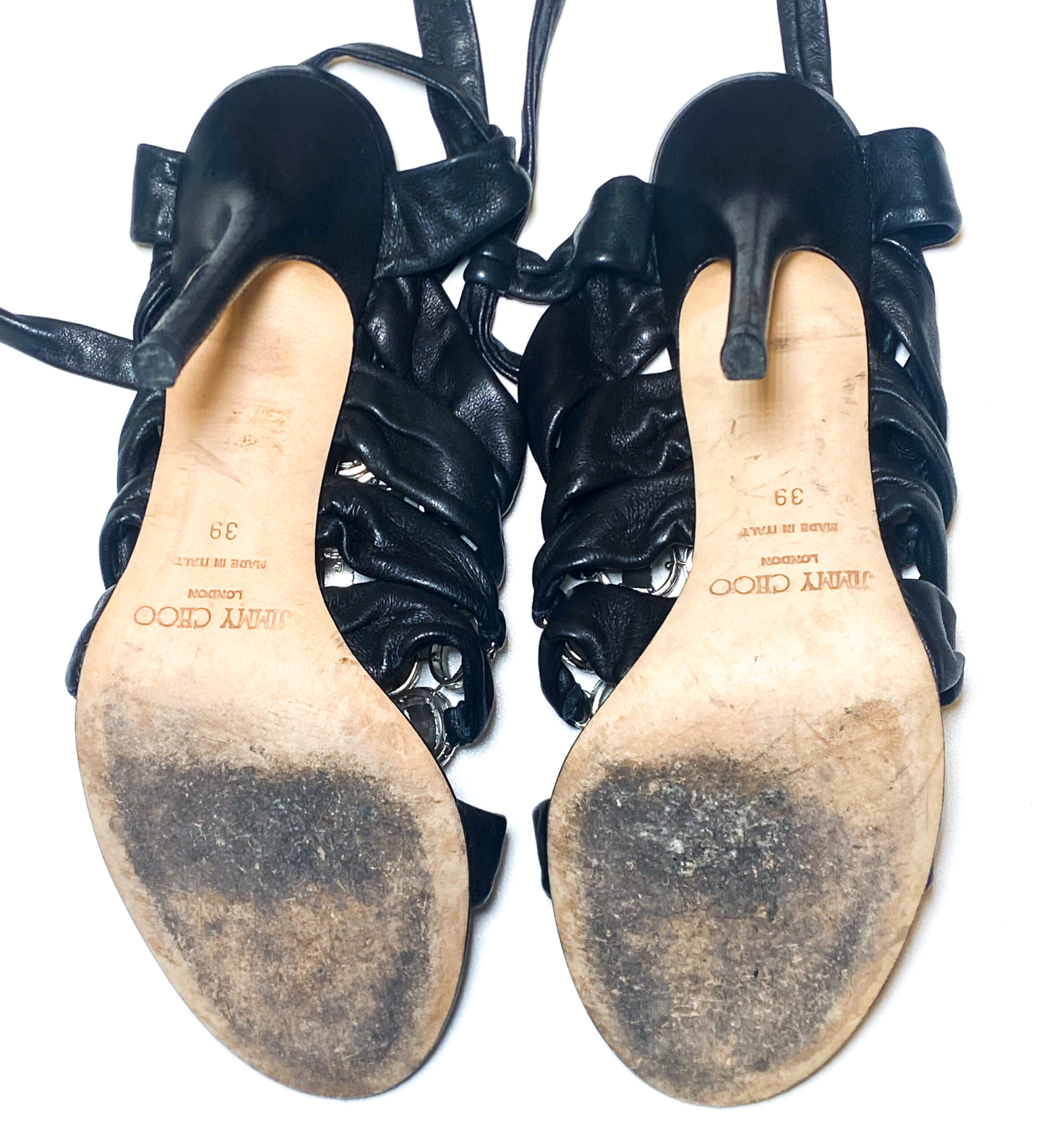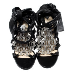 - Style: BLACK LEATHER CRYSTAL EMBELLISHED ANKLE WRAP SANDALS HEELS